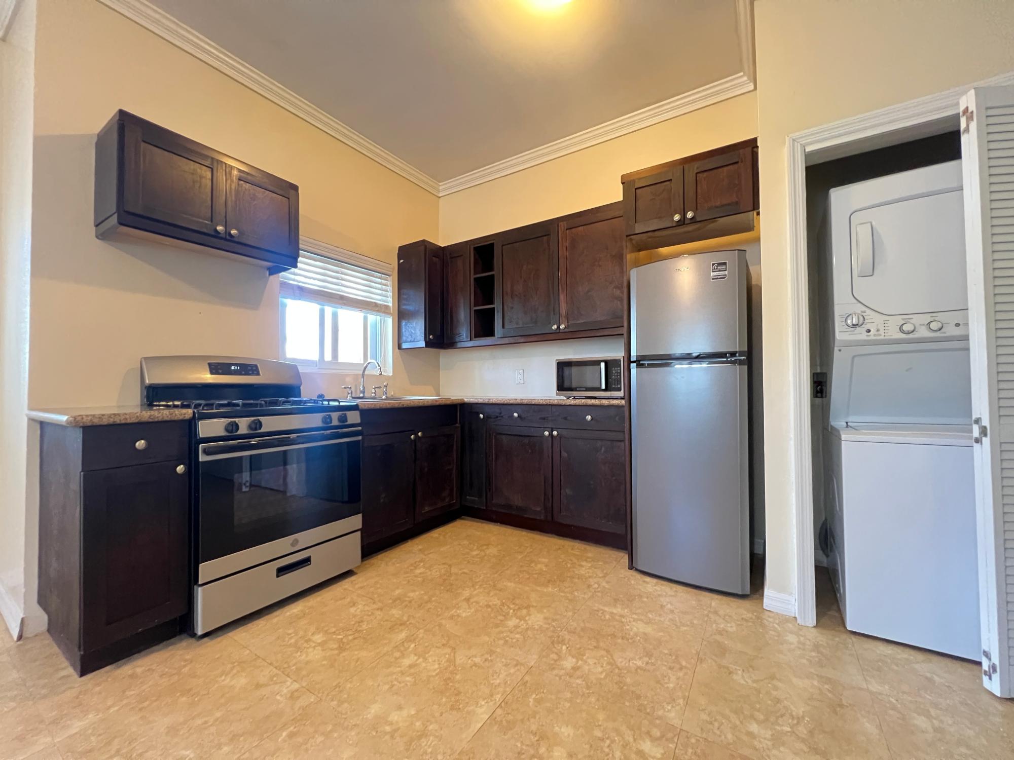 Spacious one-bedroom rental in the quiet Love Estates Community. Available for immediate occupancy, this property is being rented fully furnished and features all the comforts one would expect in today's contemporary styled decor. The kitchen and living areas are spacious and feature a most desirable gas range stove and convenient washer/dryer combo. The bedroom boasts classy decor setting a cozy environment that well compliments this rental pad. Other features include: Additional storage and water is included.