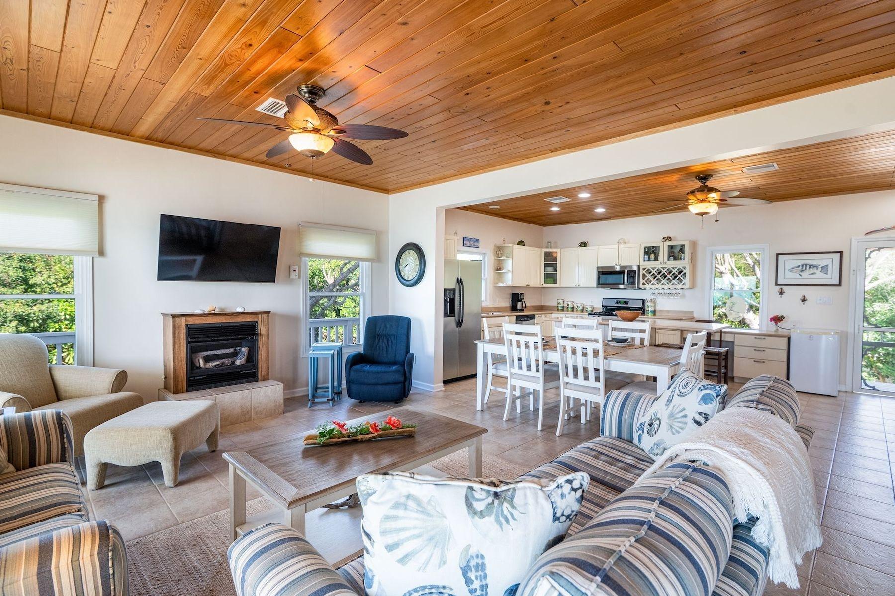 Beautifully elevated with stunning views of the Sea of Abaco and 45 feet of quiet waterfront with a fantastic 70 foot private deep-water dock and 10,000 pound boat lift right at your doorstep. Nextasea is a thoughtfully designed and finely crafted 3 bedroom, 2 bathroom home on an 10,593 sq ft lot overlooking Tahiti Beach and Tilloo Cay in the Abaco Islands of The Bahamas. Glass doors lead to the highlight of this home - a fantastic 672 sq. ft. deck, bound to become the favorite spot to unwind and watch the boaters navigate Tilloo Cut. The main floor consists of an open-layout kitchen, living and dining with vaulted ceilings and an ensuite primary bedroom that connects to a laundry. Upstairs, two sizeable bedrooms, a spacious jack and jill bath, and private balconies are the perfect retreat for visiting family and guests. Enjoy endless Bahama Blue views from every room. Fully on solar power and a 653 sq ft garage that provides storage and parking for an included Polaris Ranger.