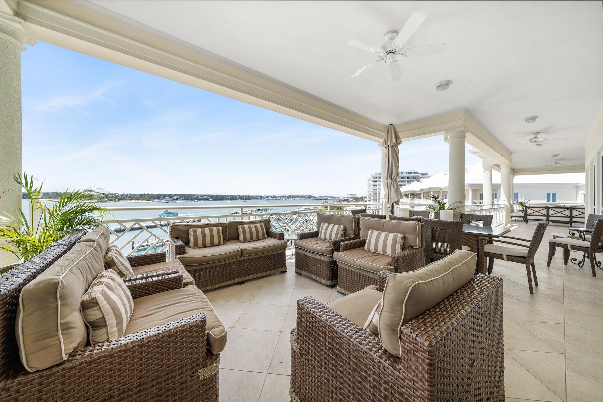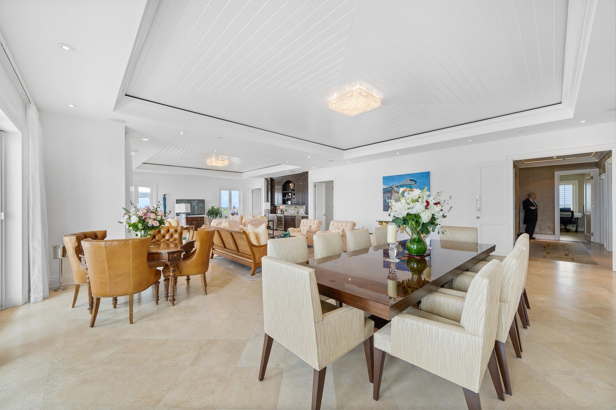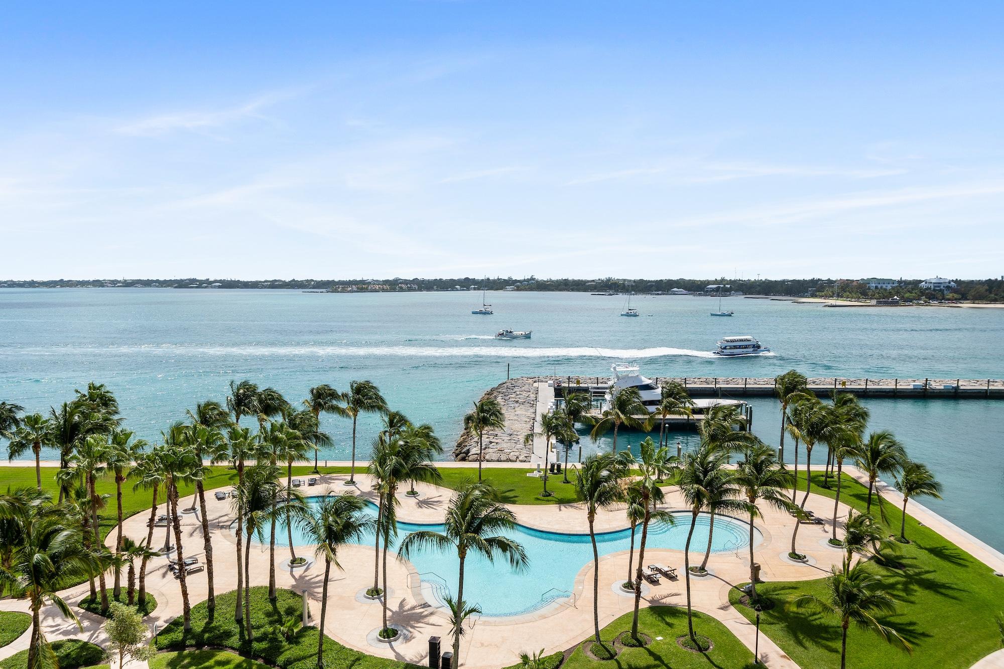 Enjoy exquisite bay, golf course, and ocean views from this luxurious 4 bedroom 4.5 bathroom, 6,570sf Penthouse located in Ocean Club Residences in the exclusive gated beachfront and golf course community of Ocean Club Estates on Paradise Island. This Penthouse has an open floorplan with living room, dining room, and TV room all leading out to an expansive covered terrace overlooking the pools, marina and harbour. The spacious master suite features hardwood floors, an office, and his & her bathrooms. The master bedroom has serene harbour views while her master bathroom overlooks the golf course and ocean beyond. All of the bedrooms have ensuite bathrooms and also private covered balconies with golf course and sea views. The custom kitchen features include Dual Stainless Steel refrigerator/freezers, an illuminated center island, solid wood cabinetry, and granite countertops. Ocean Club Residences amenities include on-site concierge, a gym and fitness room, two pools, a private marina, a Beach Club with an infinity pool, tennis courts, and membership access to the Atlantis resort.