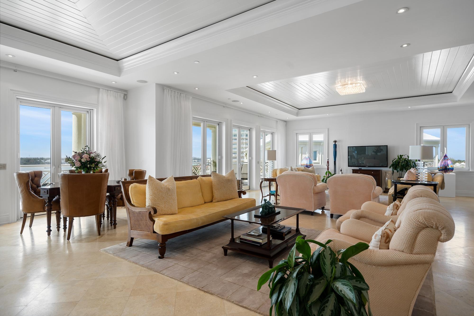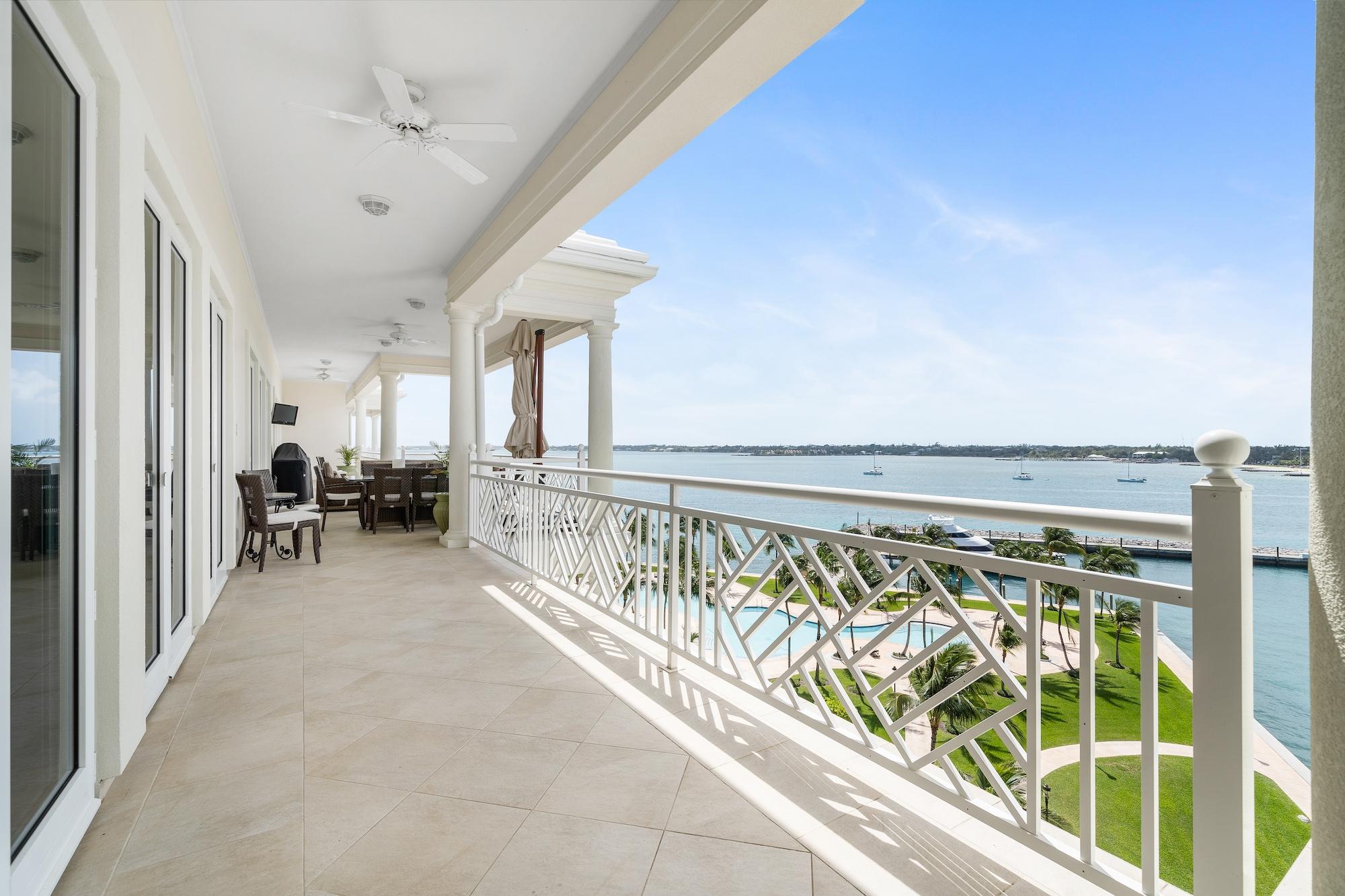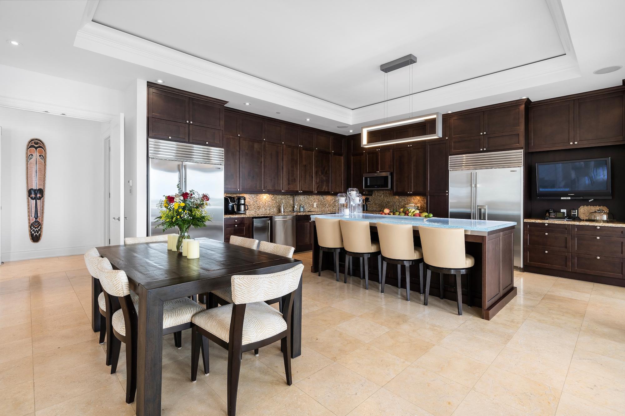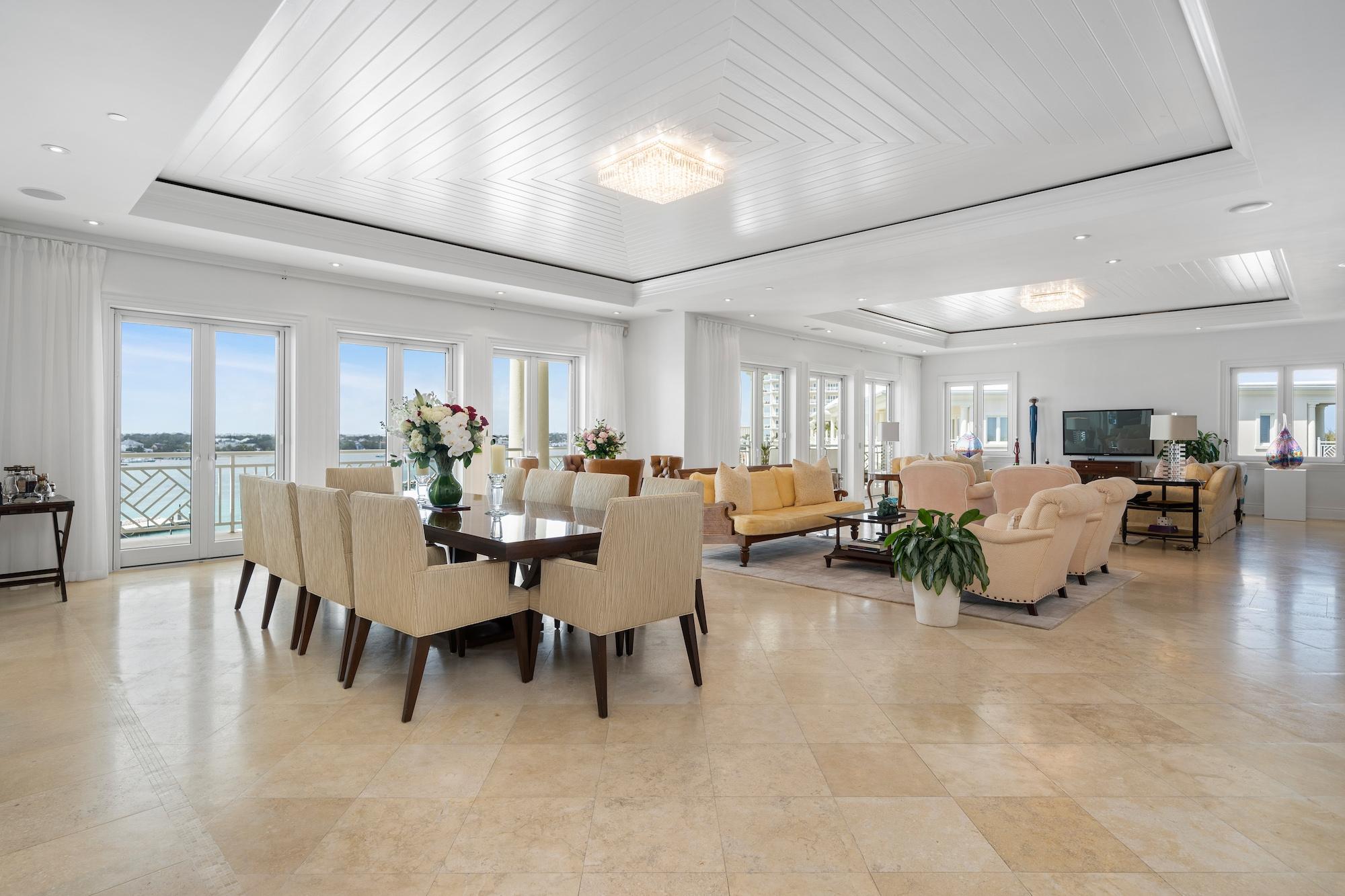 Enjoy exquisite bay, golf course, and ocean views from this luxurious 4 bedroom 4.5 bathroom, 6,570sf Penthouse located in Ocean Club Residences in the exclusive gated beachfront and golf course community of Ocean Club Estates on Paradise Island. This Penthouse has an open floorplan with living room, dining room, and TV room all leading out to an expansive covered terrace overlooking the pools, marina and harbour. The spacious master suite features hardwood floors, an office, and his & her bathrooms. The master bedroom has serene harbour views while her master bathroom overlooks the golf course and ocean beyond. All of the bedrooms have ensuite bathrooms and also private covered balconies with golf course and sea views. The custom kitchen features include Dual Stainless Steel refrigerator/freezers, an illuminated center island, solid wood cabinetry, and granite countertops. Ocean Club Residences amenities include on-site concierge, a gym and fitness room, two pools, a private marina, a Beach Club with an infinity pool, tennis courts, and membership access to the Atlantis resort.
