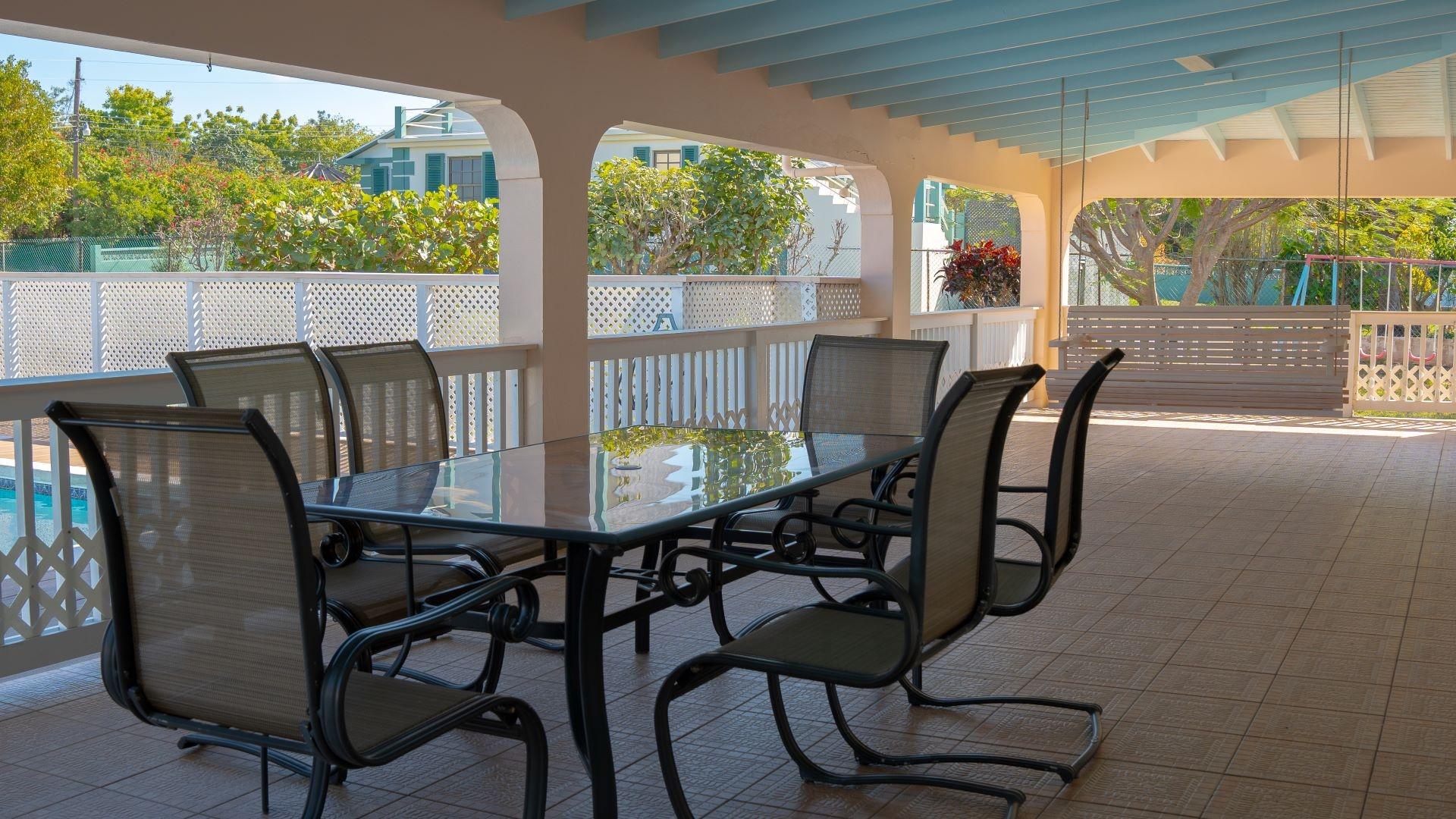 Spacious family home with swimming pool located on Russell Island, Spanish Wells, Bahamas. This well-appointed residence offers three bedrooms, three bathrooms, a home office, and a large kitchen and living areaâperfect for family living or hosting guests. The living room and primary bedroom open directly onto a refreshing swimming pool and expansive patio, ideal for outdoor dining and entertaining. The generous grounds are a gardenerâs delight, featuring mature fruit trees and ample space for a vegetable garden. Additional features include a formal dining room, laundry room, two-car garage, hurricane shutters, generator, and a large rainwater cistern. Conveniently located near the bridge to Spanish Wells, parks, and marinas, this beautiful home offers comfort, space, and an excellent island location.
