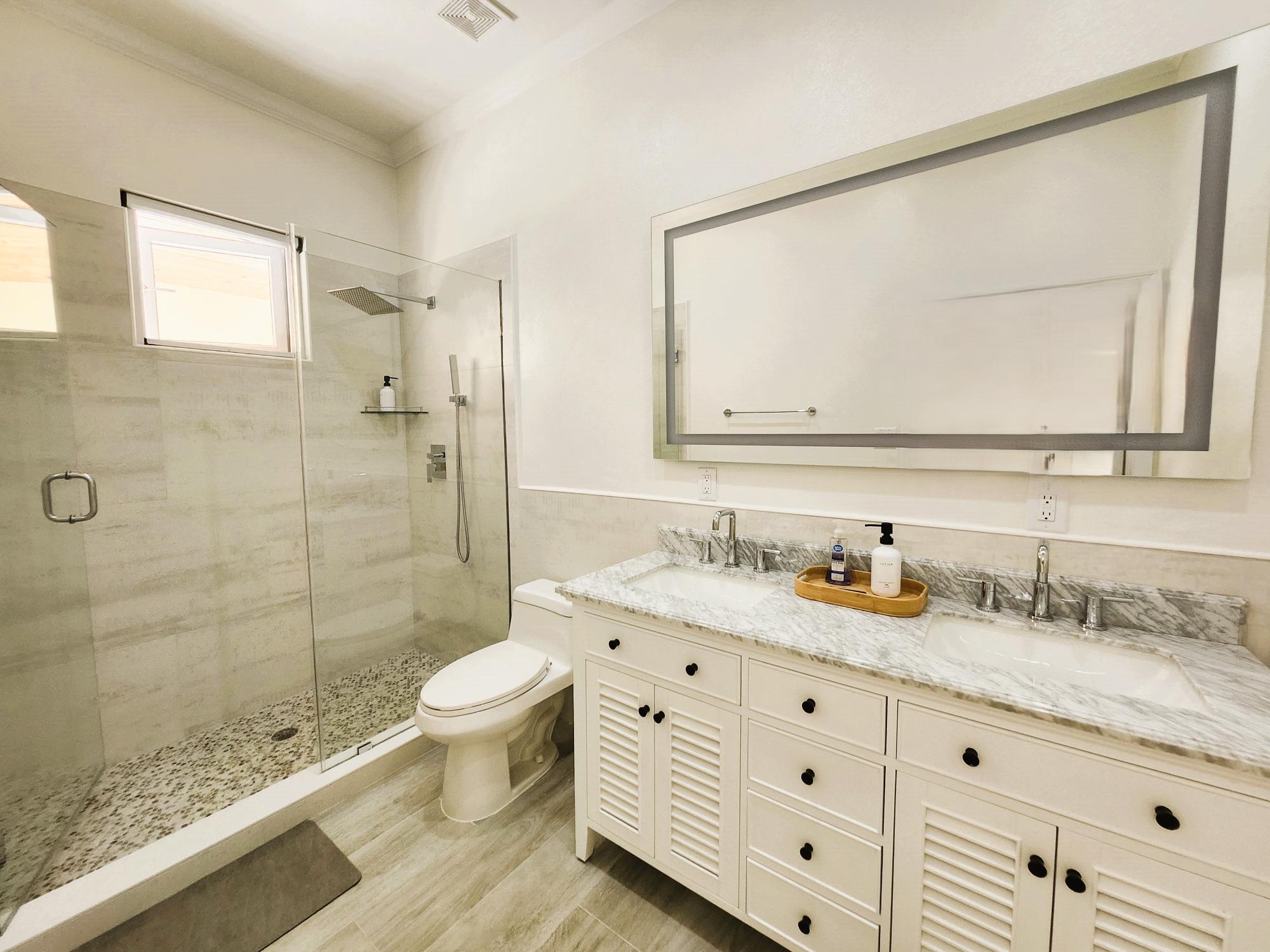 Modern, spacious, fully and tastefully furnished 1 bed, 2 full bath turnkey unit. The open concept large living room and kitchen provide generous living space, and the pantry and separate laundry room bonus storage areas. Ensuite bedroom with walk-in closet, desk and bathroom with double sinks. Hurricane impact windows and patio doors provide natural lighting. The pool, large rear patio, beautifully landscaped yard and barbecue grill are perfect for outdoor enjoyment. Stand-by generator, light, water, gas all included.