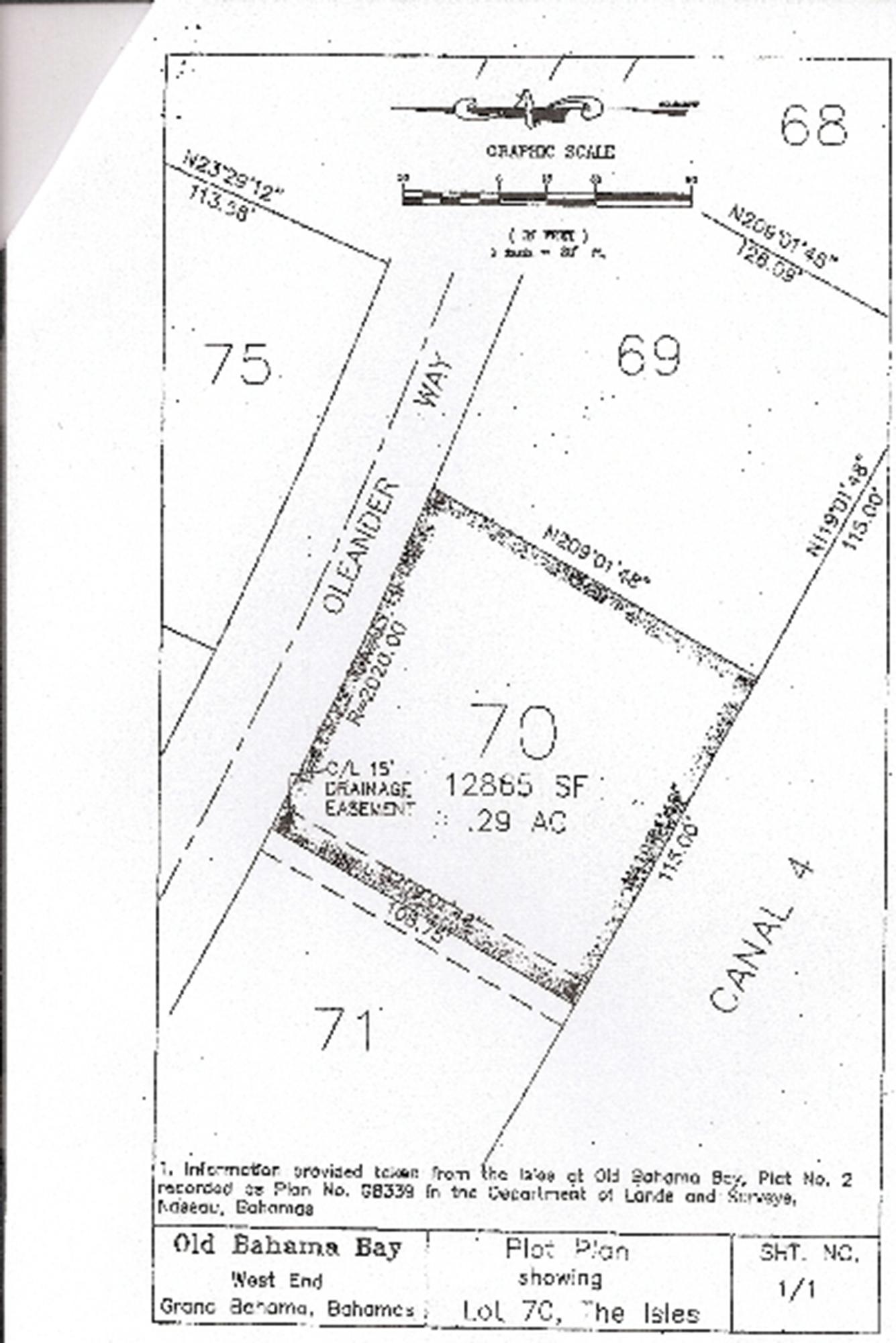 Build your dream island retreat on this exceptional canal-front homesite in the prestigious Old Bahama Bay community. Lot 70, ideally located on Oleander Way, offers 12,865 square feet (approximately 0.29 acres) of prime real estate with an impressive 115 feet of canal frontageâperfect for boaters and water enthusiasts. Enjoy the tranquility of waterfront living with easy access to the marina and the charm and exclusivity Old Bahama Bay is known for. This generously sized lot provides ample space to design a custom home while taking full advantage of serene water views and cooling island breezes. A rare opportunity to own canal-front property in one of Grand Bahamaâs most sought-after neighborhoods.
