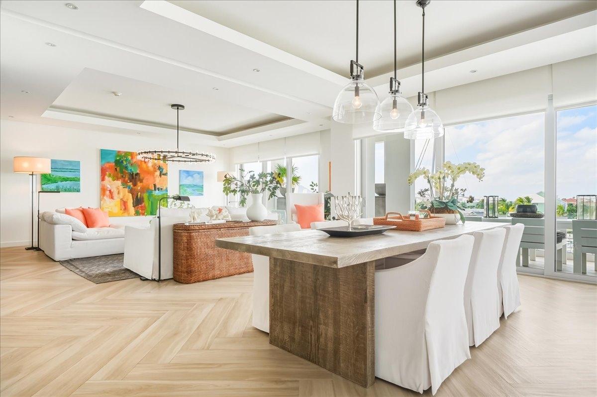 Introducing an exceptional double penthouse in the gated, beachfront community of Palm Cay. The largest residence in One Marina, Unit 109 is a spacious and luxurious 5 bed, 5.5 bath condo, that seamlessly blends expansive interior living with generous outdoor spaces. A well-designed kitchen is equipped with high-end appliances, making it ideal for everyday living and entertaining. The open-plan living area spans the full width of the unit and enjoys natural light from sliding glass doors that open onto the large balcony, perfect for outdoor dining. Upstairs, the primary suite features its own balcony, ample closet space, and a luxurious ensuite bathroom. A separate guest wing includes 2 ensuite bedrooms, while 2 additional ensuite bedrooms are located on the 1st floor. The unit has a laundry room, powder room, rooftop pool access, plus a private rooftop pool and patio offering amazing ocean views. Residents enjoy Palm Cayâs world-class marina, abundant amenities, and a community with no rental restrictions, making 109 ideal for vacation rentals.