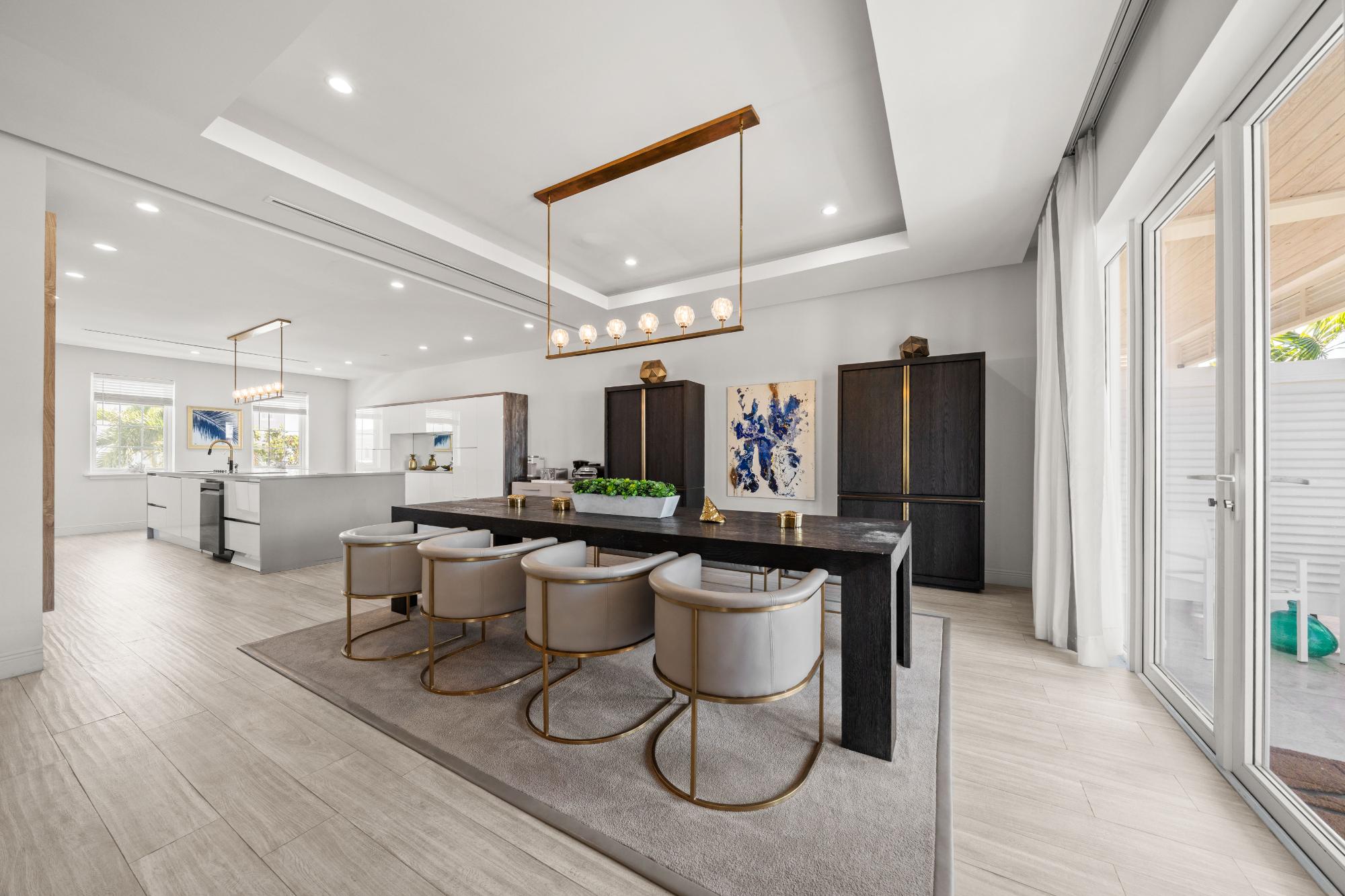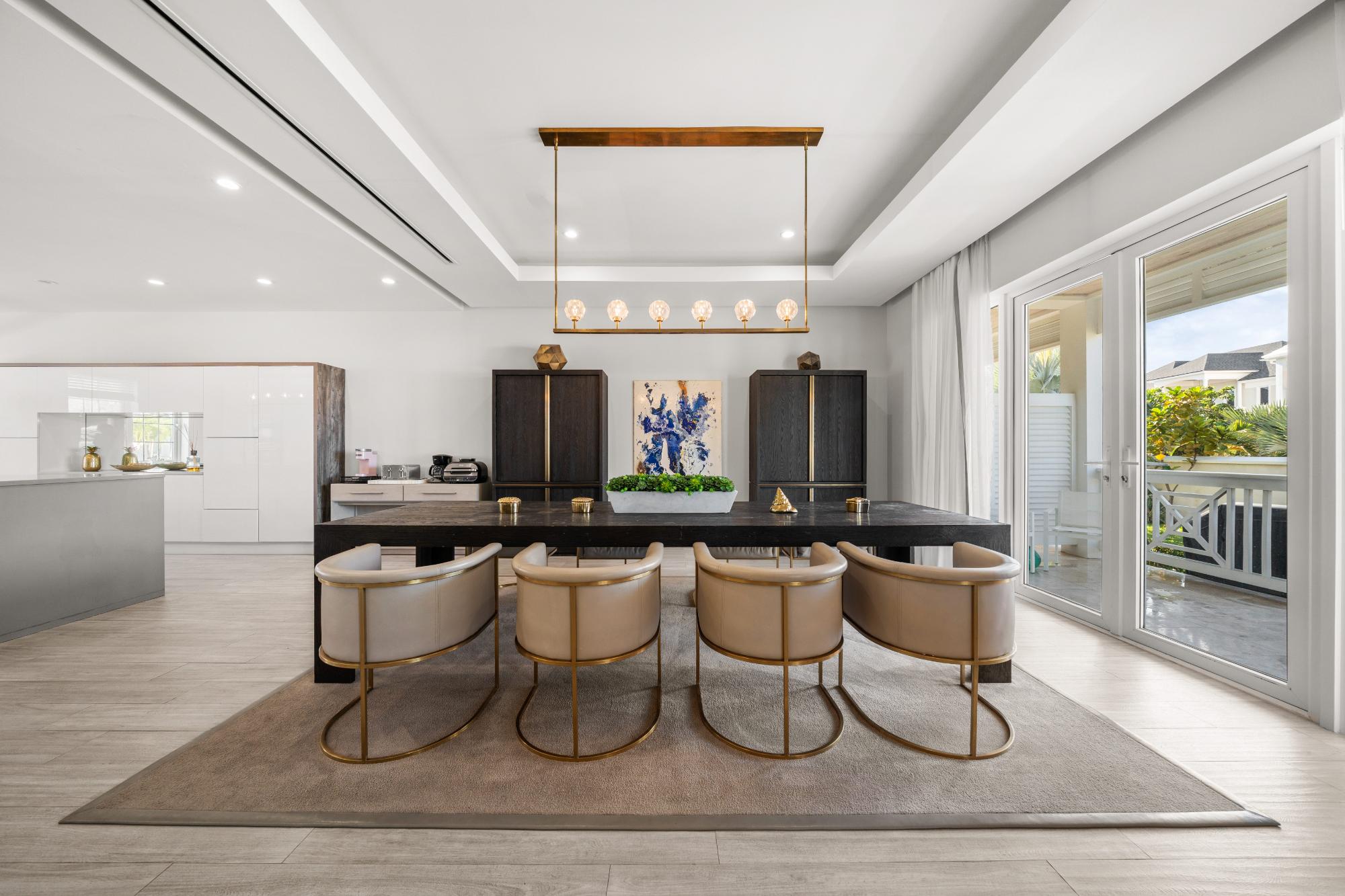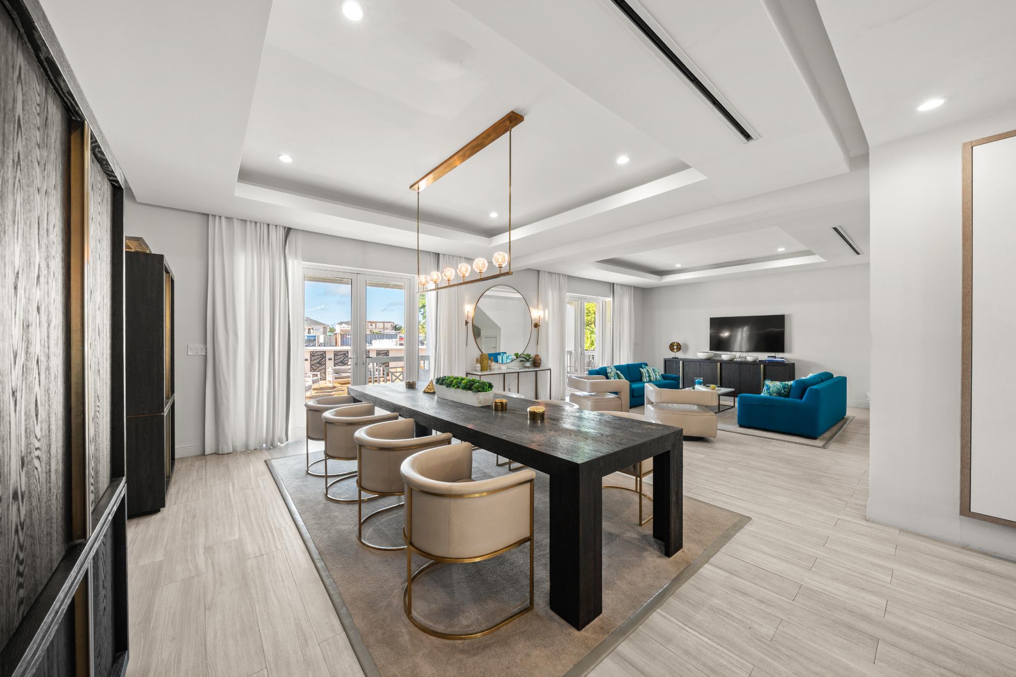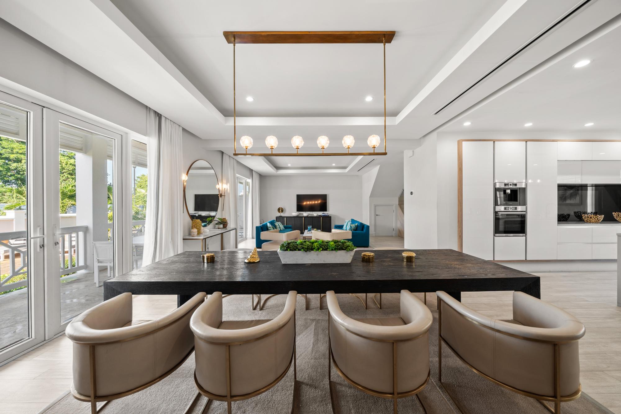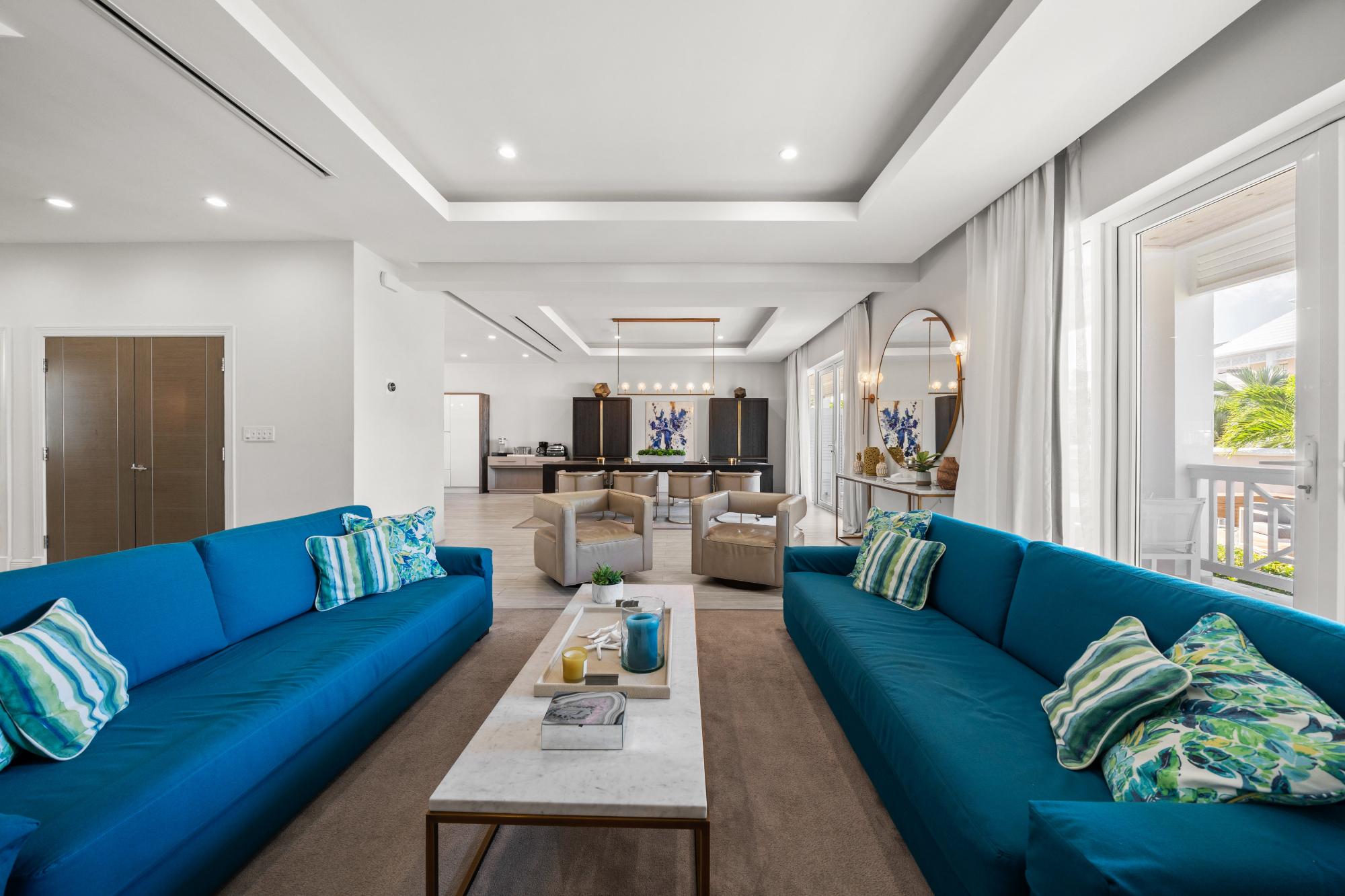 Discover refined island living in this exceptional double-unit townhome located within the exclusive gated community of Palm Cay, Nassau. Offering five bedrooms, four full bathrooms, and two powder rooms, this beautifully appointed residence is sold turnkey and fully furnished for effortless ownership. The open-concept living, dining, and kitchen area features porcelain tile flooring, recessed lighting, and high-end finishes throughout. A chefâs kitchen with solid wood cabinetry, a large island with seating for four, built-in coffee maker, double ovens, microwave, and wine storage flows seamlessly into the spacious living area and out to an inviting covered patio. Upstairs, the luxurious primary suite includes a large soaking tub, separate shower, double sinks, and dual rain showerheads, while the third-floor lounge with a bar, balconies, powder room, and pool table provides an ideal entertainment space. Outdoor living is maximised with a double garden, oversized patio, and garden deck for relaxing or entertaining. Just steps from one of New Providenceâs most beautiful beaches.