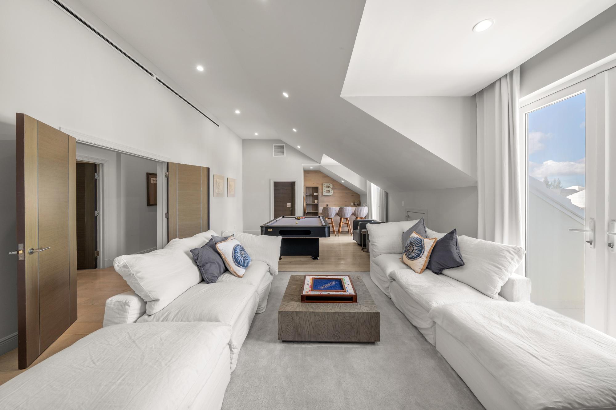 Discover refined island living in this exceptional double-unit townhome located within the exclusive gated community of Palm Cay, Nassau. Offering five bedrooms, four full bathrooms, and two powder rooms, this beautifully appointed residence is sold turnkey and fully furnished for effortless ownership. The open-concept living, dining, and kitchen area features porcelain tile flooring, recessed lighting, and high-end finishes throughout. A chefâs kitchen with solid wood cabinetry, a large island with seating for four, built-in coffee maker, double ovens, microwave, and wine storage flows seamlessly into the spacious living area and out to an inviting covered patio. Upstairs, the luxurious primary suite includes a large soaking tub, separate shower, double sinks, and dual rain showerheads, while the third-floor lounge with a bar, balconies, powder room, and pool table provides an ideal entertainment space. Outdoor living is maximised with a double garden, oversized patio, and garden deck for relaxing or entertaining. Just steps from one of New Providenceâs most beautiful beaches.