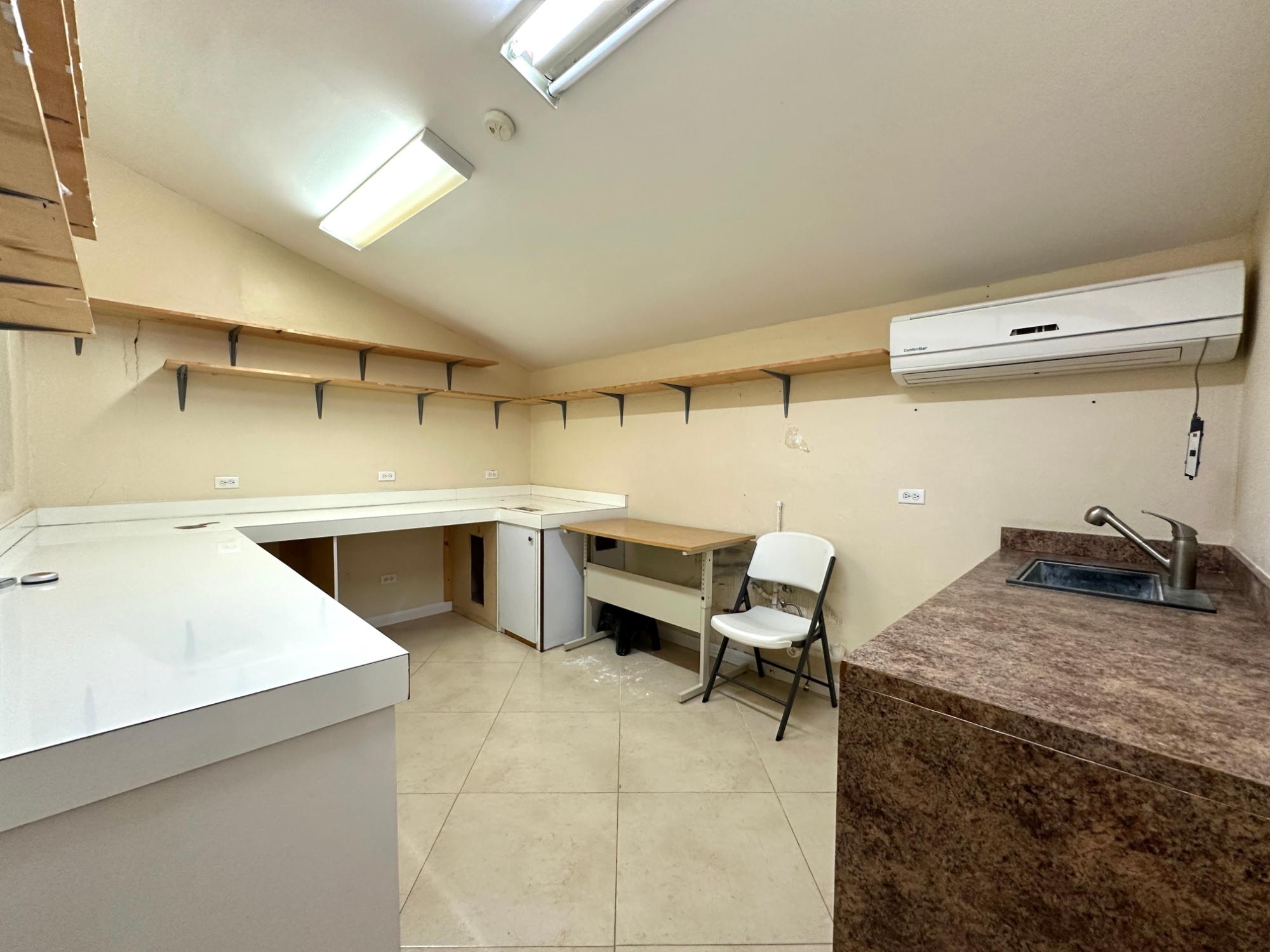 Centrally located and well-designed office building best suited for a medical practice with central lobby, display areas, examining rooms, private offices, patient and employee bathrooms, kitchen and storage. The location offers good exposure and ample parking. Central air-conditioning, tiled floors, roll-down shutters and generator.