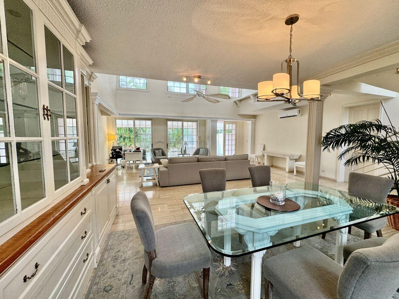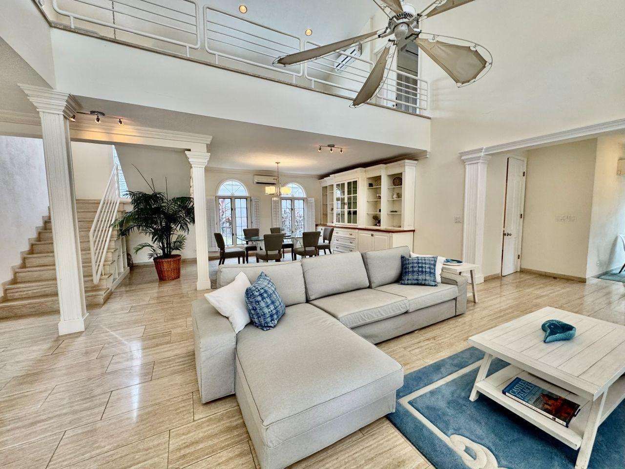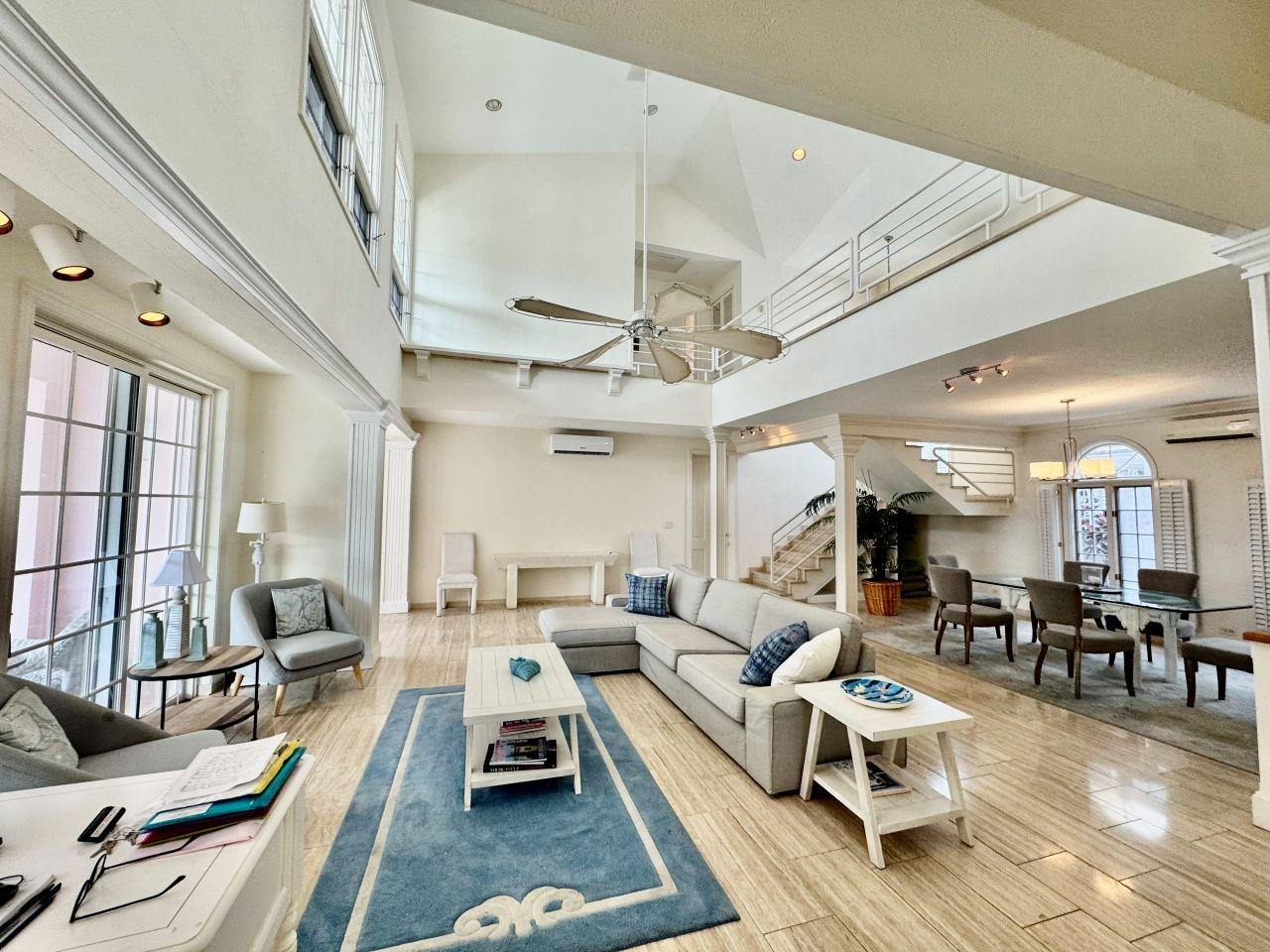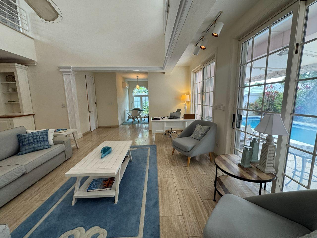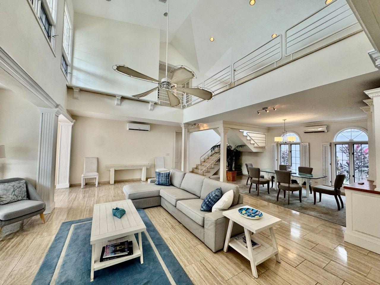 This freestanding 3-bedroom home on Paradise Island offers long-term living in a private, gated enclave of just four residences. Features include a private pool, enclosed garden, ground-floor ensuite bedroom, open-plan living & dining area with double-height ceilings, an eat-in kitchen with stainless steel appliances. The upper level includes a sitting area for use as a TV/lounge or office, a spacious master suite with a walk-in closet and balcony access, plus an additional ensuite bedroom that also opens to the covered balcony. With a generator, laundry room, single car garage, and walkability to Cabbage Beach, this home perfectly blends comfort and convenience.