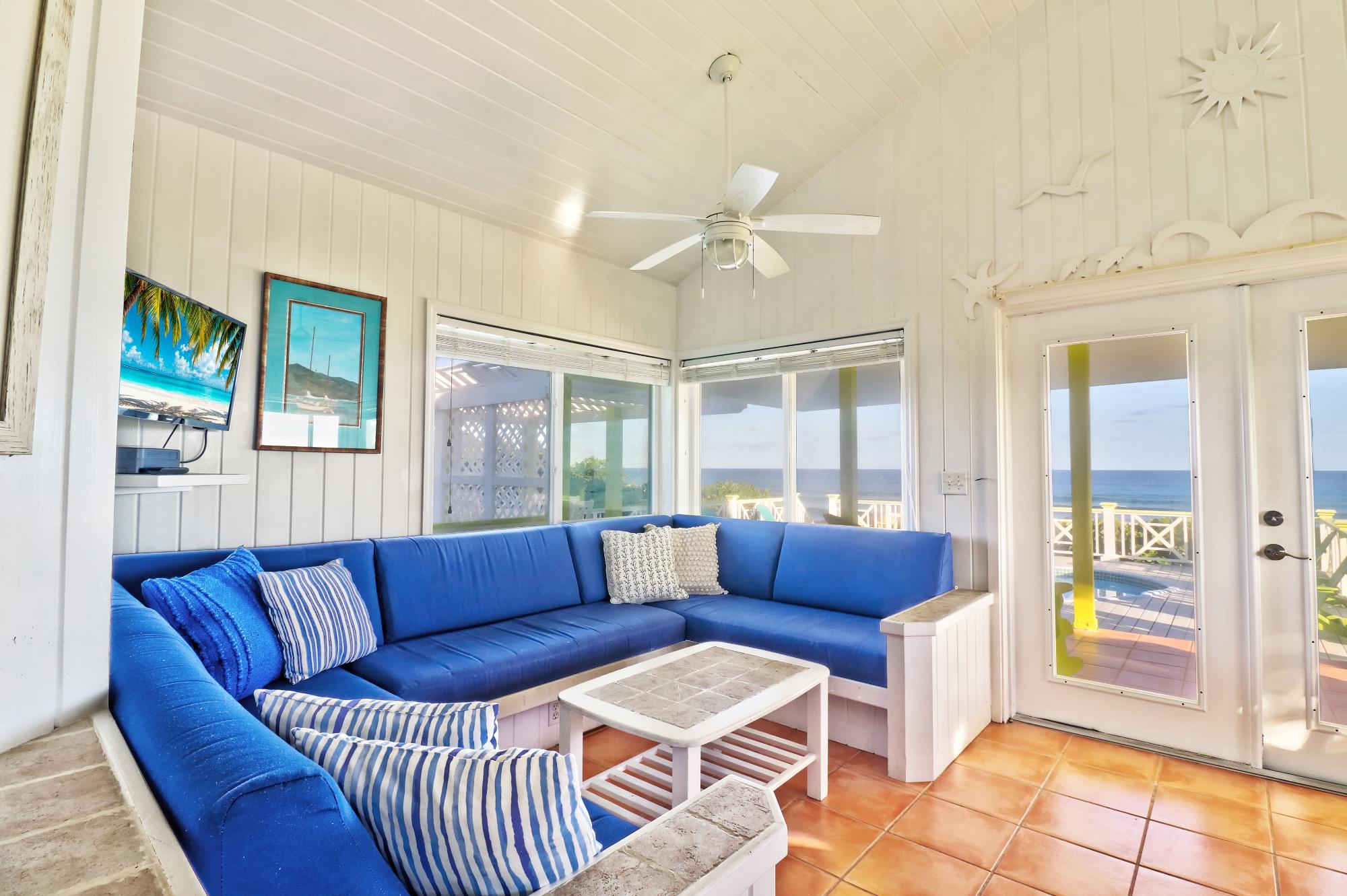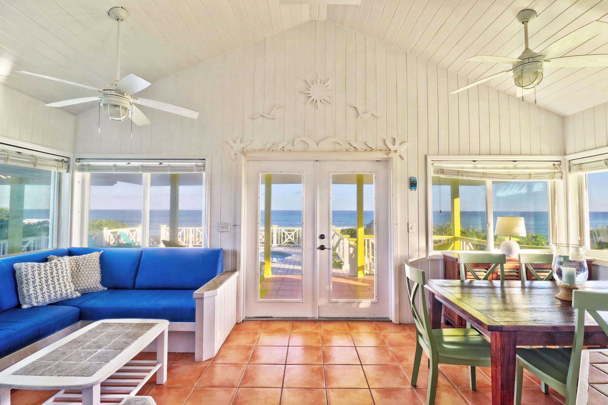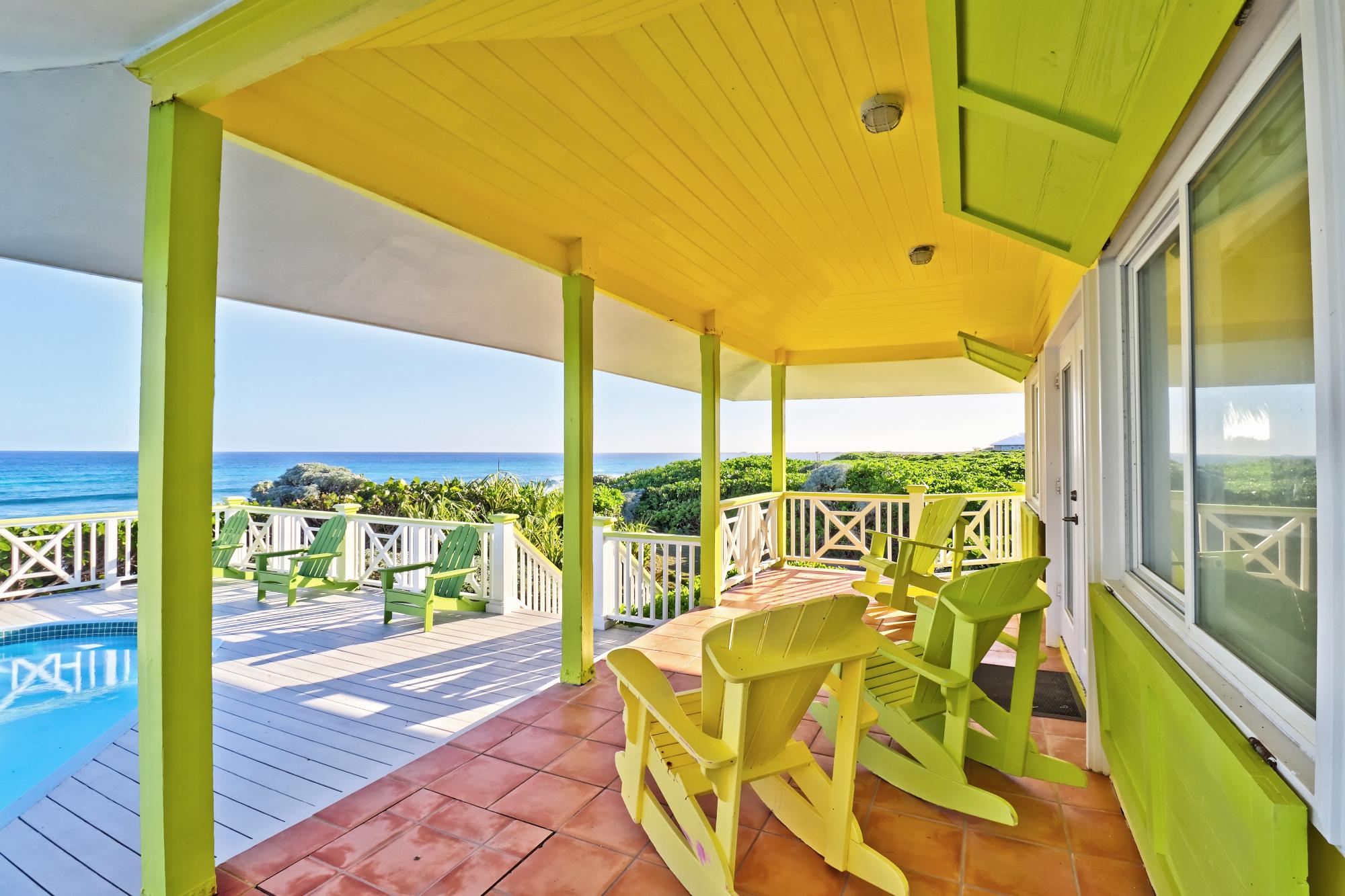 Discover this fabulous beach house with breathtaking Atlantic Ocean views and direct sightlines to the legendary Garbanzo surf break. The jewel of the property is its incredible beachfront location, literally steps away - along with its expansive pool deck and lounging areas, perfectly positioned to overlook the endless expanse and sunrise over the Atlantic. The upstairs residence offers 2 bedrooms, 1.5 baths, and an open-plan kitchen/living area with glass doors opening to generous decks and al fresco dining. A private exterior staircase leads to a self-contained lower-level suite with 1 bedroom, full kitchen, and living roomâperfect for privacy. Additional amenities include a parking garage, standby generator, hanging shutters, and more. Walking distance to Sea Spray Marina, and a 15-minute golf cart ride to the historic village of Hope Town. Guaranteed to be the catalyst to some of the best memories of your life!