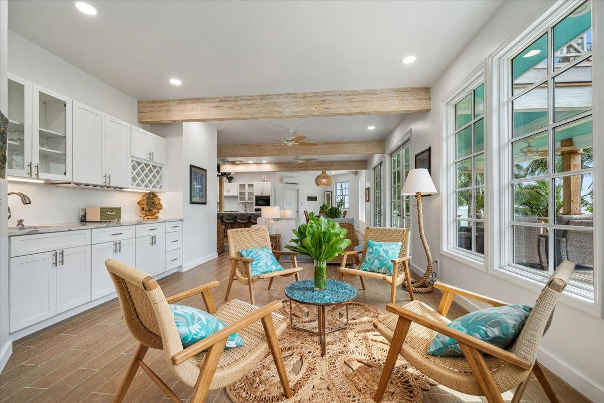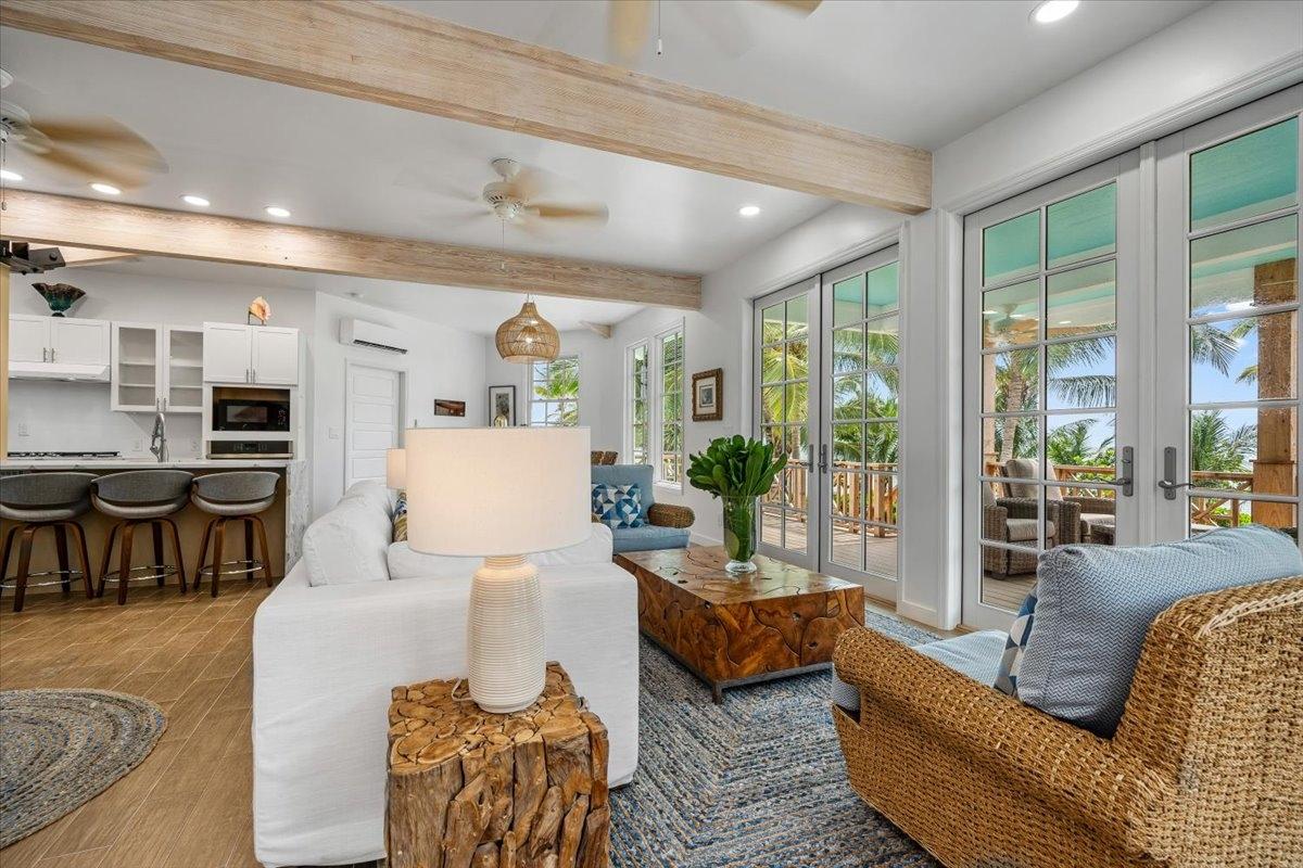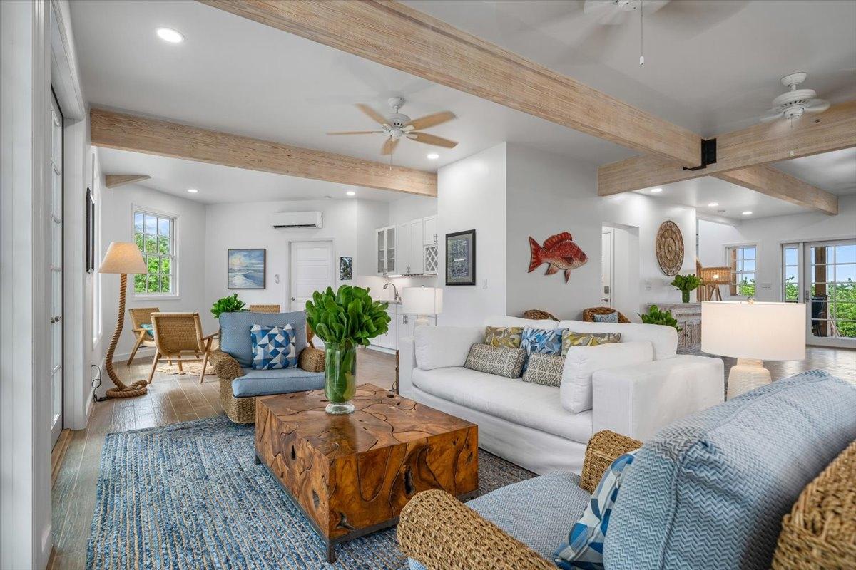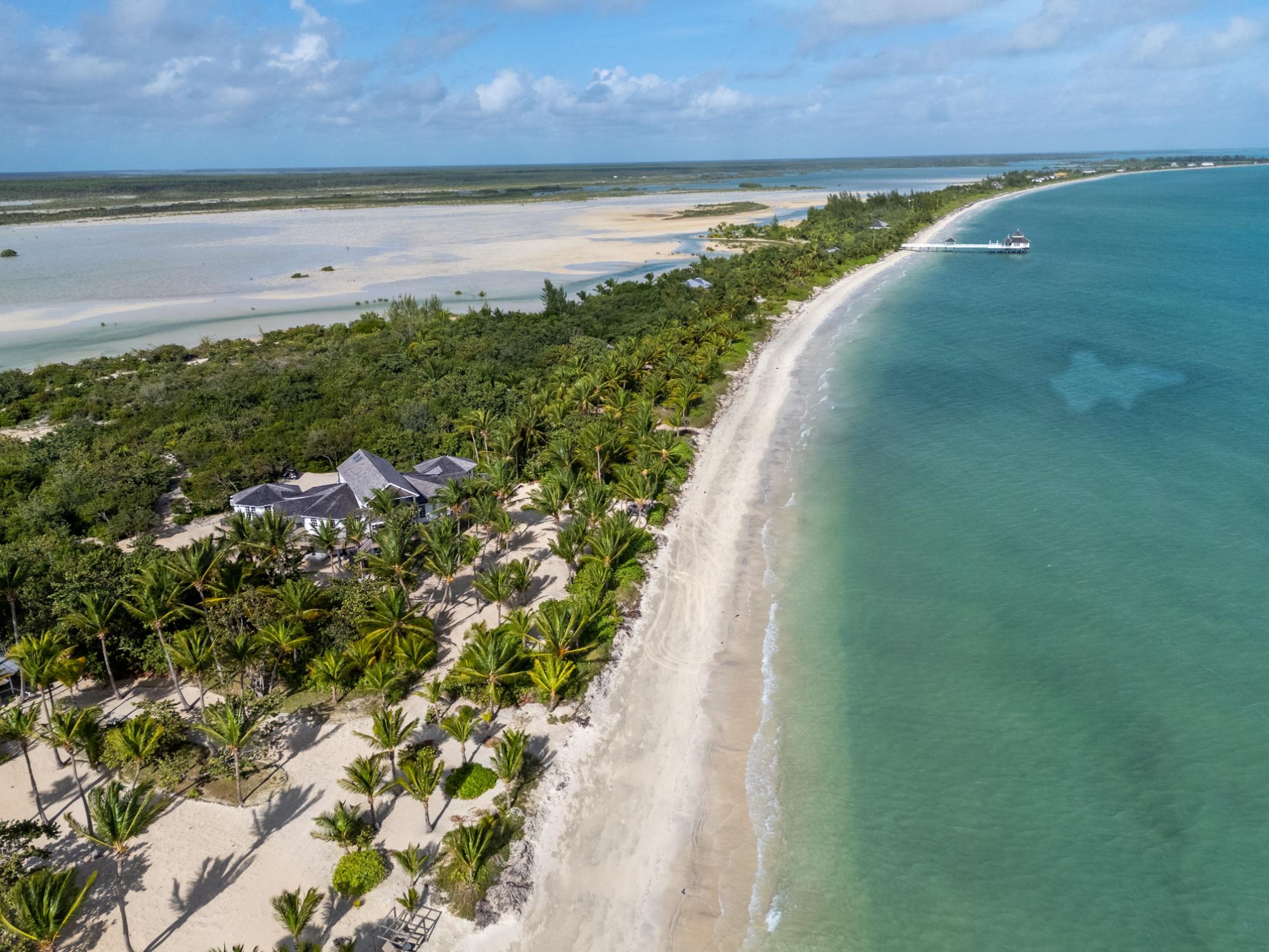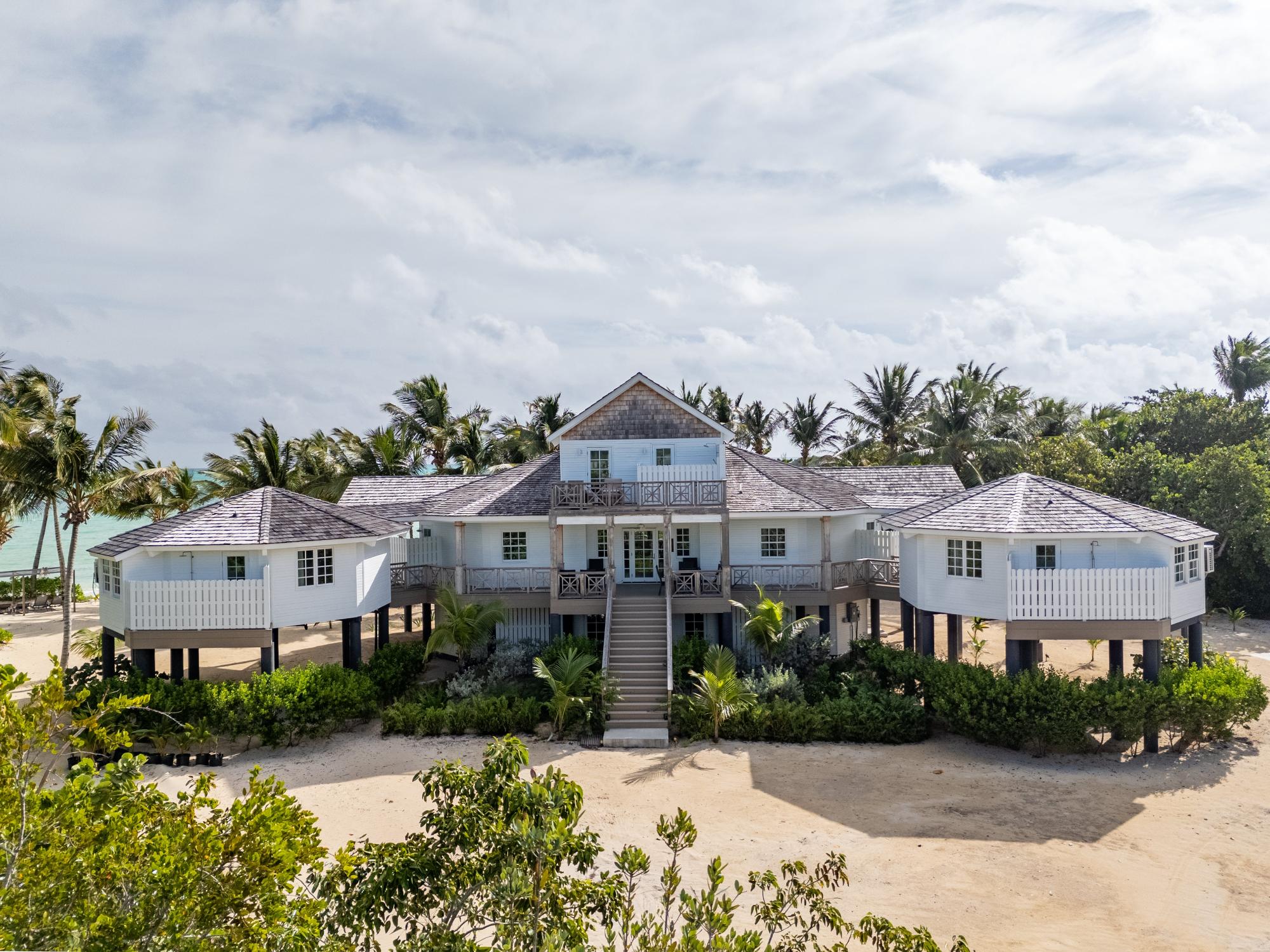 The majestic Queen Pineapple Villa is the latest and most sought-after oceanfront estate on Kamalame Cay. Nestled on the award-winning island off the Androsian coast, Queen Pineapple is the ultimate vacation bungalow fit for an entourage of family and guests. Constructed with 5 bedrooms, 5.5. baths and 4,630 sq. ft. air-conditioned space, the property holds three main floors. The first floor occupies the kitchen, living and dining room, while the second floor boasts a 2,545 sq. ft. deck that leads guests into their separate in-suite bedrooms. Finally, the crown of Queen Pineapple hosts a master bedroom and in-suite bathroom at the top floor. The main balcony hosts a 230 sq. ft. staircase entrance at the front, and two staircases at the back, opening up into an expanded, 200 ft shoreline. Queen Pineapple is fashioned with other amenities, including powder rooms, laundry, entry foyer, covered deck and 405 sq. ft. landings, and 870 sq. ft. parking. Wrapped around lush green palms, Queen Pineappleâs circular property ensures privacy and space for all guests.