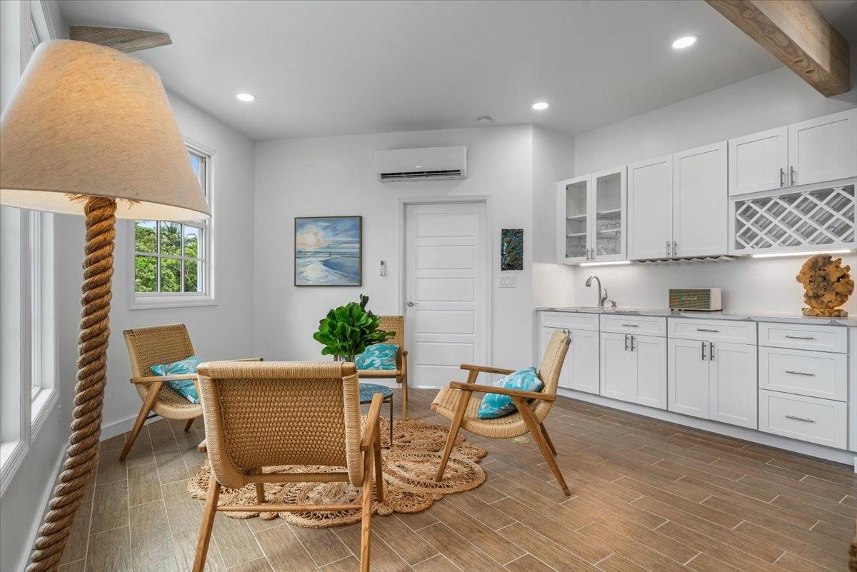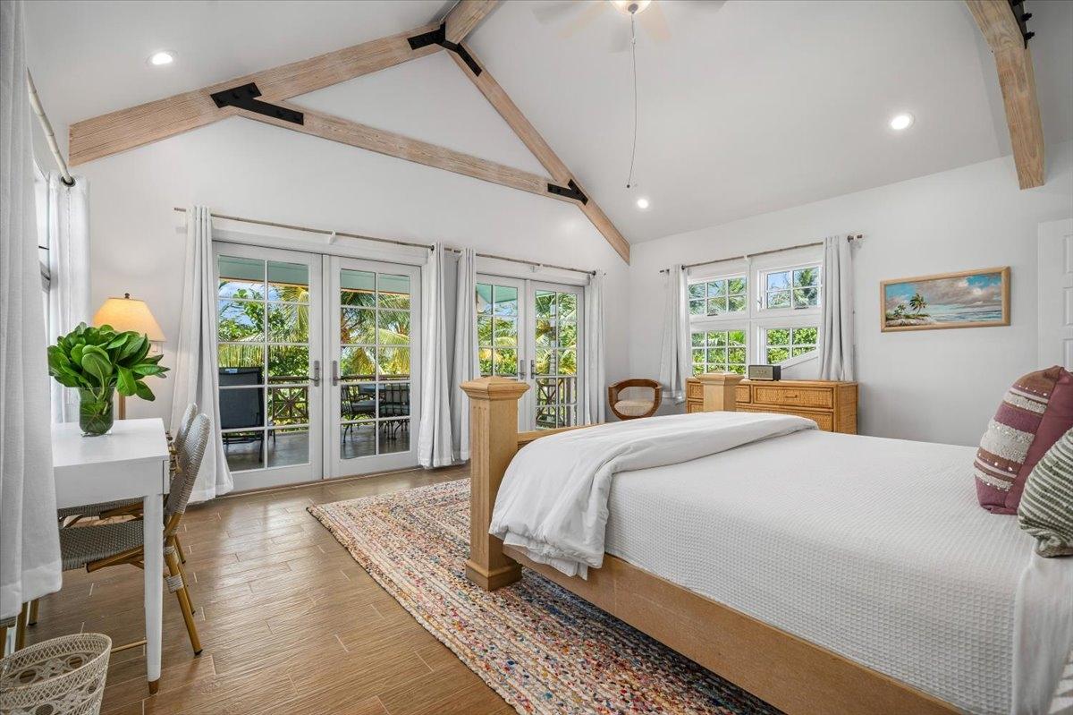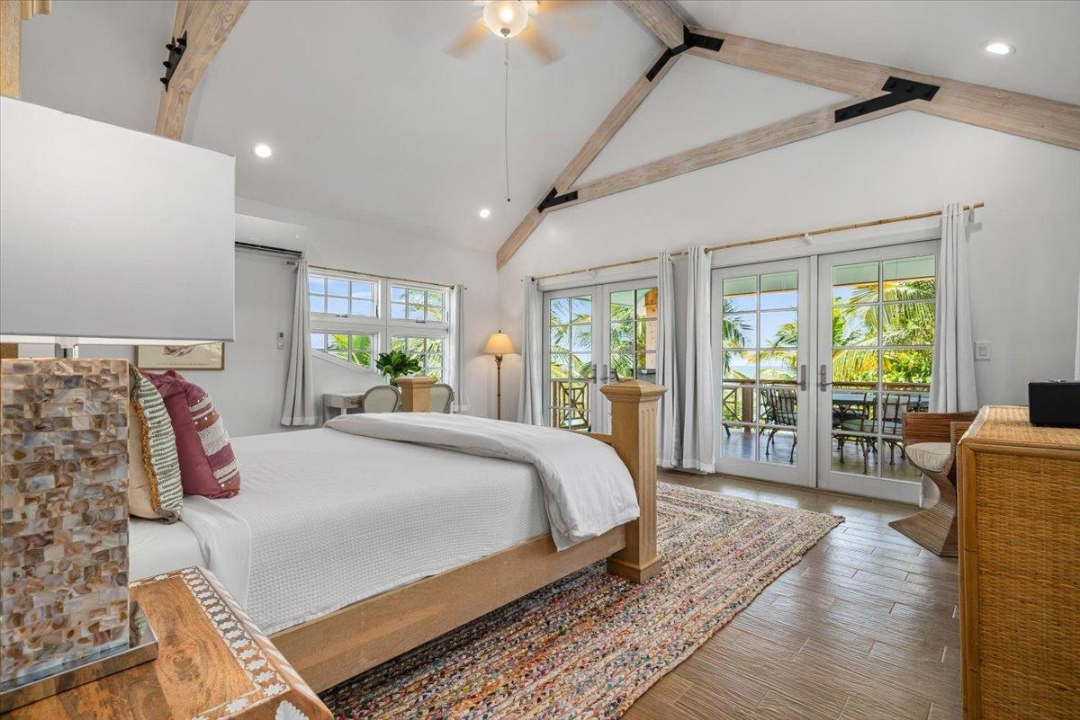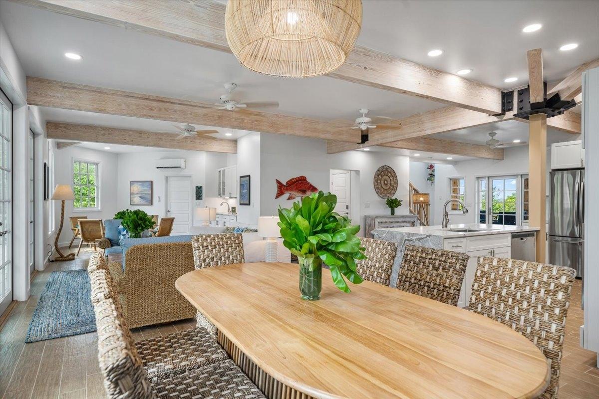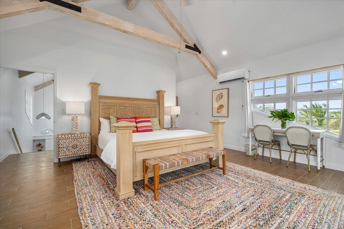 The majestic Queen Pineapple Villa is the latest and most sought-after oceanfront estate on Kamalame Cay. Nestled on the award-winning island off the Androsian coast, Queen Pineapple is the ultimate vacation bungalow fit for an entourage of family and guests. Constructed with 5 bedrooms, 5.5. baths and 4,630 sq. ft. air-conditioned space, the property holds three main floors. The first floor occupies the kitchen, living and dining room, while the second floor boasts a 2,545 sq. ft. deck that leads guests into their separate in-suite bedrooms. Finally, the crown of Queen Pineapple hosts a master bedroom and in-suite bathroom at the top floor. The main balcony hosts a 230 sq. ft. staircase entrance at the front, and two staircases at the back, opening up into an expanded, 200 ft shoreline. Queen Pineapple is fashioned with other amenities, including powder rooms, laundry, entry foyer, covered deck and 405 sq. ft. landings, and 870 sq. ft. parking. Wrapped around lush green palms, Queen Pineappleâs circular property ensures privacy and space for all guests.