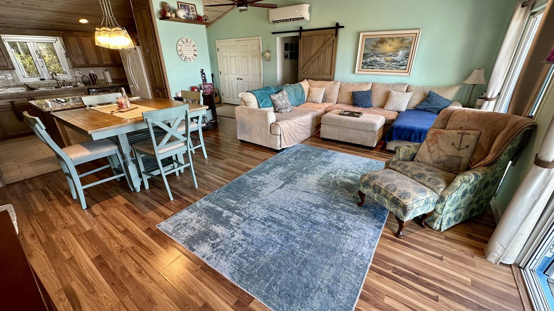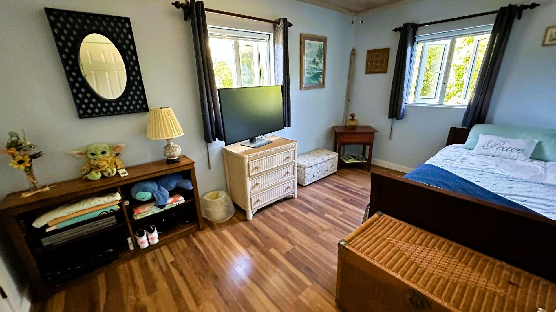 Perched atop a serene ridge, with elevations reaching approximately 120 feet, this expansive residence, featuring a newly installed saltwater pool, spans three lots and offers an exceptional blend of privacy and modern conveniences, along with panoramic views of the Atlantic Ocean. Tucked away on a quiet, residential street in the sought-after community of Rainbow Bay, the property provides the perfect balance of seclusion and connection. The home itself has undergone extensive upgrades and thoughtful modernization under its current owners. The upstairs level features two bedrooms and one and a half bathrooms, including a fully renovated main bathroom with natural wood finishes, gold fixtures, and a calming rainforest-inspired design. The practical open living, dining, and kitchen floorplan flows well and captures spectacular ocean vistas. Passing whales have been spotted from the upper-level veranda. The lower level has been completely gutted and reimagined as a stylish one-bedroom, one-bath open-concept suite with oversized glass doors leading out to a private outdoor oasis