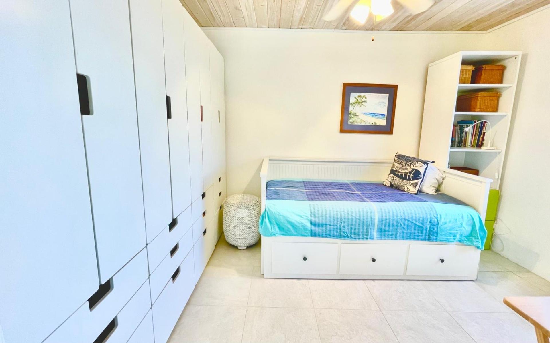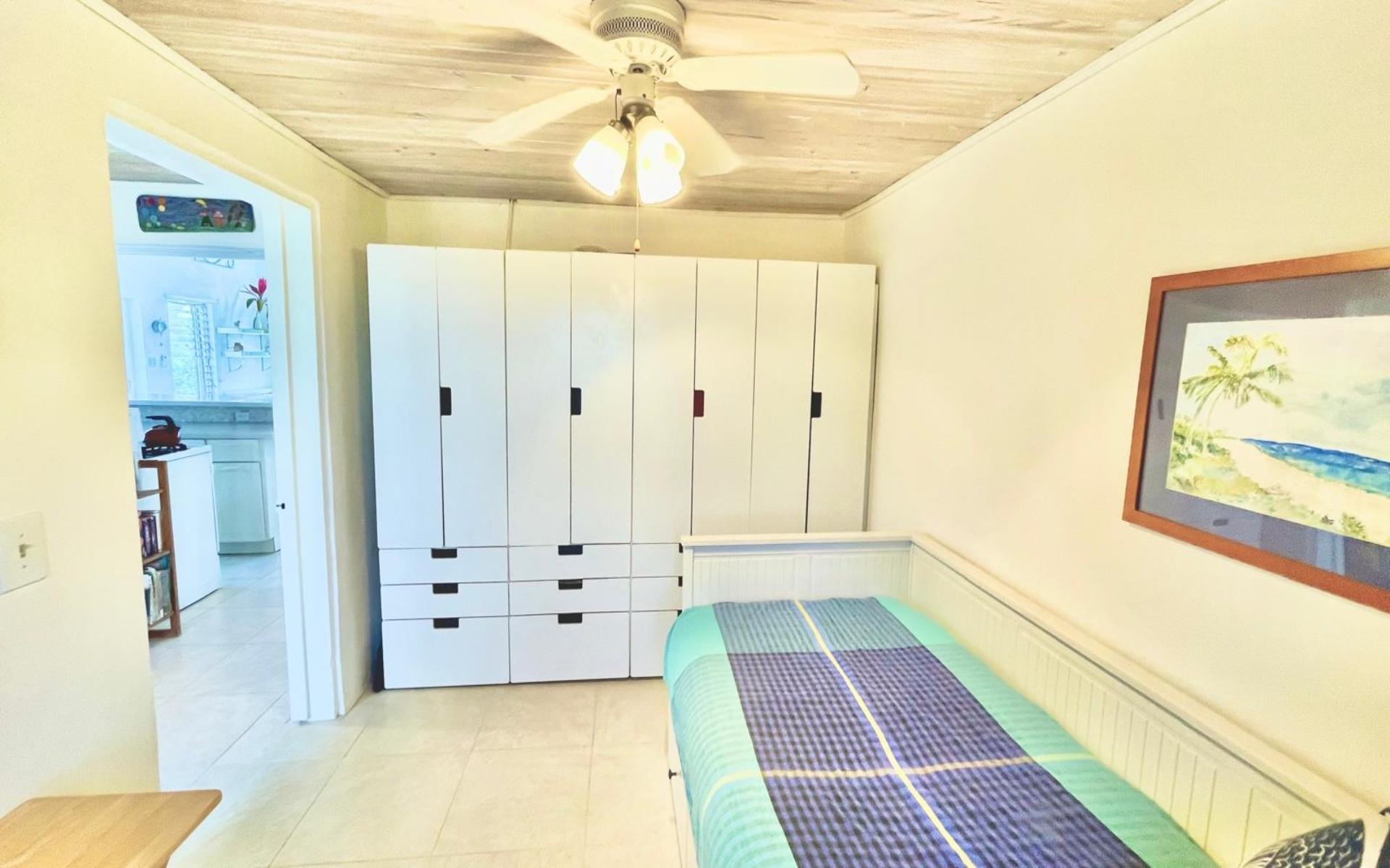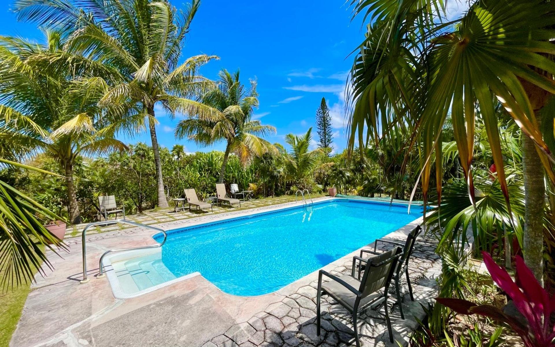 This two-bedroom, two-bath house sits on three lots. The bright open-plan living/kitchen and dining room has lots of windows and light furnishings for a pleasant living experience. It comes with a new water-efficient whirlpool washing machine, dishwasher, microwave, air fryer, toaster oven, Kitchen equipment (pots, pans, dishware, glassware, bowls, etc.), furniture, vacuum, TV, and ductless air conditioners. The detached garage comes with the following tools: Over 50- hand tools, battery-operated land mower and weed wacker, shop vacuum, circular saw, Jig saw,12â miter saw, chain saws (one battery-operated), Numerous battery-operated drills, spare jalousie windows, compressor and air tools, spare water and pool pumps, extension ladder and 2 step ladders, spare roof shingles, pool equipment, etc. Outside there is a garden with vegetables, fruit trees, coconut palms and flowering plants. Greenwood beach has been voted one of the top ten beaches in the world by Conde Nast and it is a five minute walk from the house. This is a must see if you love outdoor living and the beach.