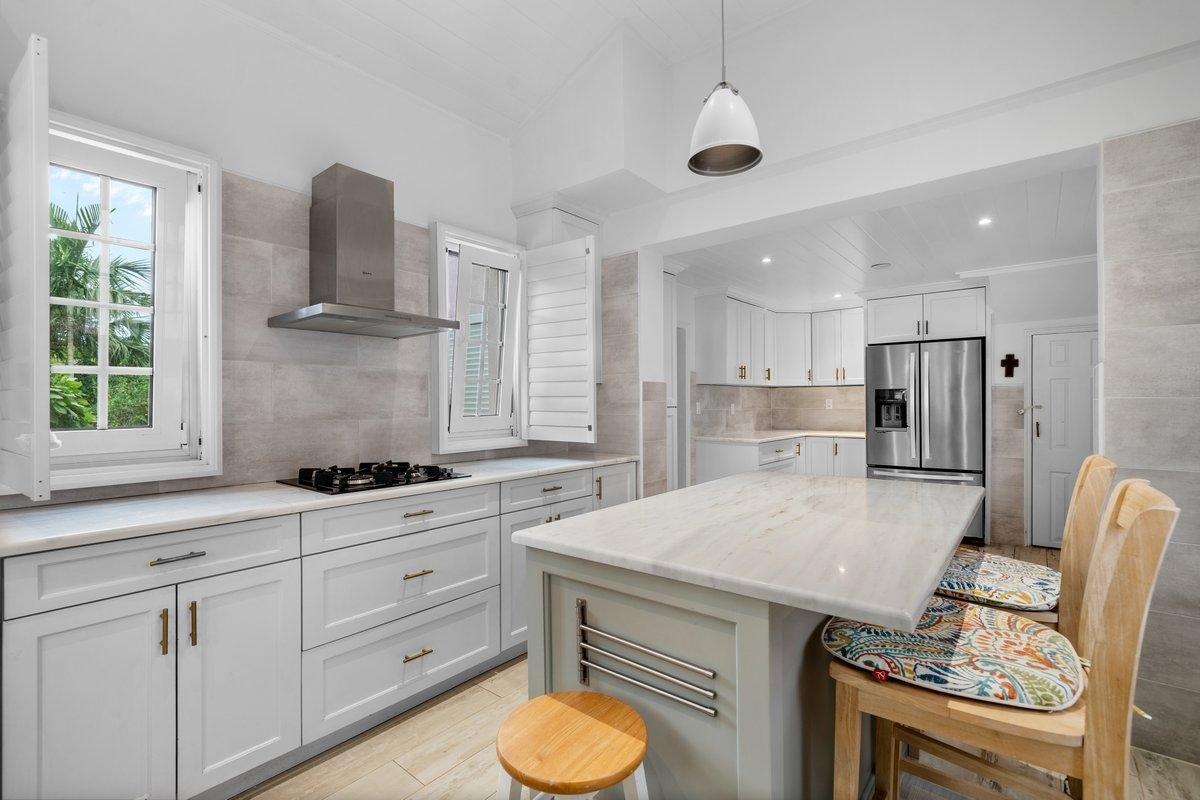 This home nestled in the prestigious community of Grove West, Vista Marina one of Nassau hidden gems with 6 Bedrooms, 5 bathrooms and a living area of 4,563 sq ft sits on a 13,674 sq ft Property in one of the most sought after neighborhood this beautifully renovated Bahamian home seamlessly blends timeless elegance with modern European touches. Ideally located just minutes from Baha Mar, Goldwynn, Goodmans Bay, and downtown Nassau, it offers both privacy and convenience, making it perfect for professionals and families alike. Property Highlights: European Craftsmanship: The home features 44 European imported tilt and turn aluminum windows and matching exterior aluminum doors, offering superior insulation, security, and style. Luxury Flooring: Porcelain tile graces the lower level, while the upper story boasts rich hardwood flooring throughout. Versatile Living Spaces: The property includes a charming guest cottage perfect for Airbnb rental income and is equipped with three separate kitchens: This home falls under the Historic Building Code, annual tax exempted.