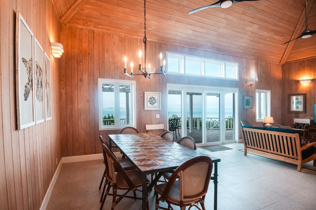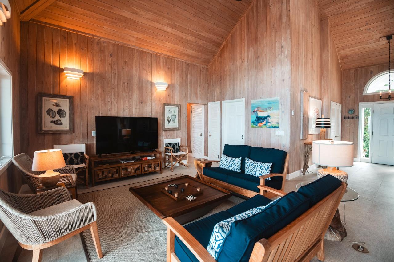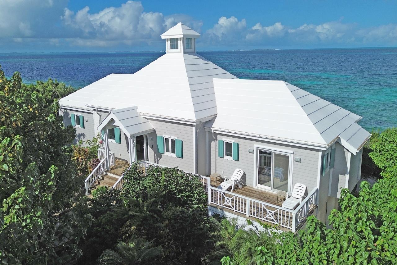 Sea Breeze" is a contemporary Caribbean-inspired waterfront villa, boasting breathtaking panoramic coastal vistas, lush tropical landscaping, and direct beach access. This updated and meticulously furnished home showcases an inviting open floor plan complemented by soaring 25 ft. high vaulted ceilings. The living room and three bedrooms seamlessly connect to an expansive, private multi-level deck and pergola, offering a variety of outdoor dining and lounging options. A gently curving concrete stairway provides secure access to the mesmerizing Sea of Abaco. Nestled on the secluded North End Beach along the Sea Of Abaco, beach access is just a stone's throw away (less than 100 paces), it's conveniently reachable via a public right-of-way. The generously sized master bedroom, complete with an en-suit bathroom, resides in one wing, while the opposite wing plays host to two guest bedrooms, each with its own well-appointed bathroom.