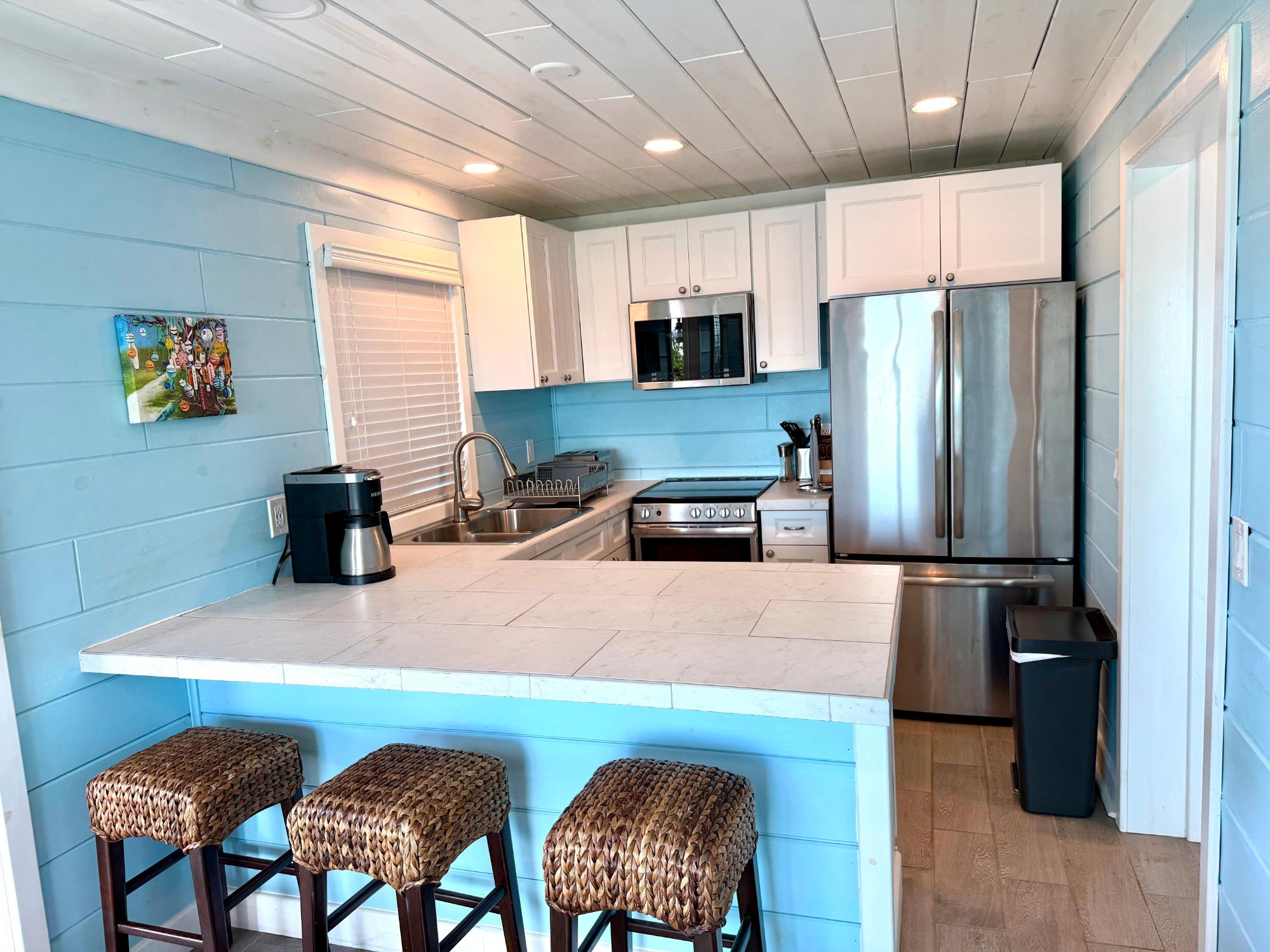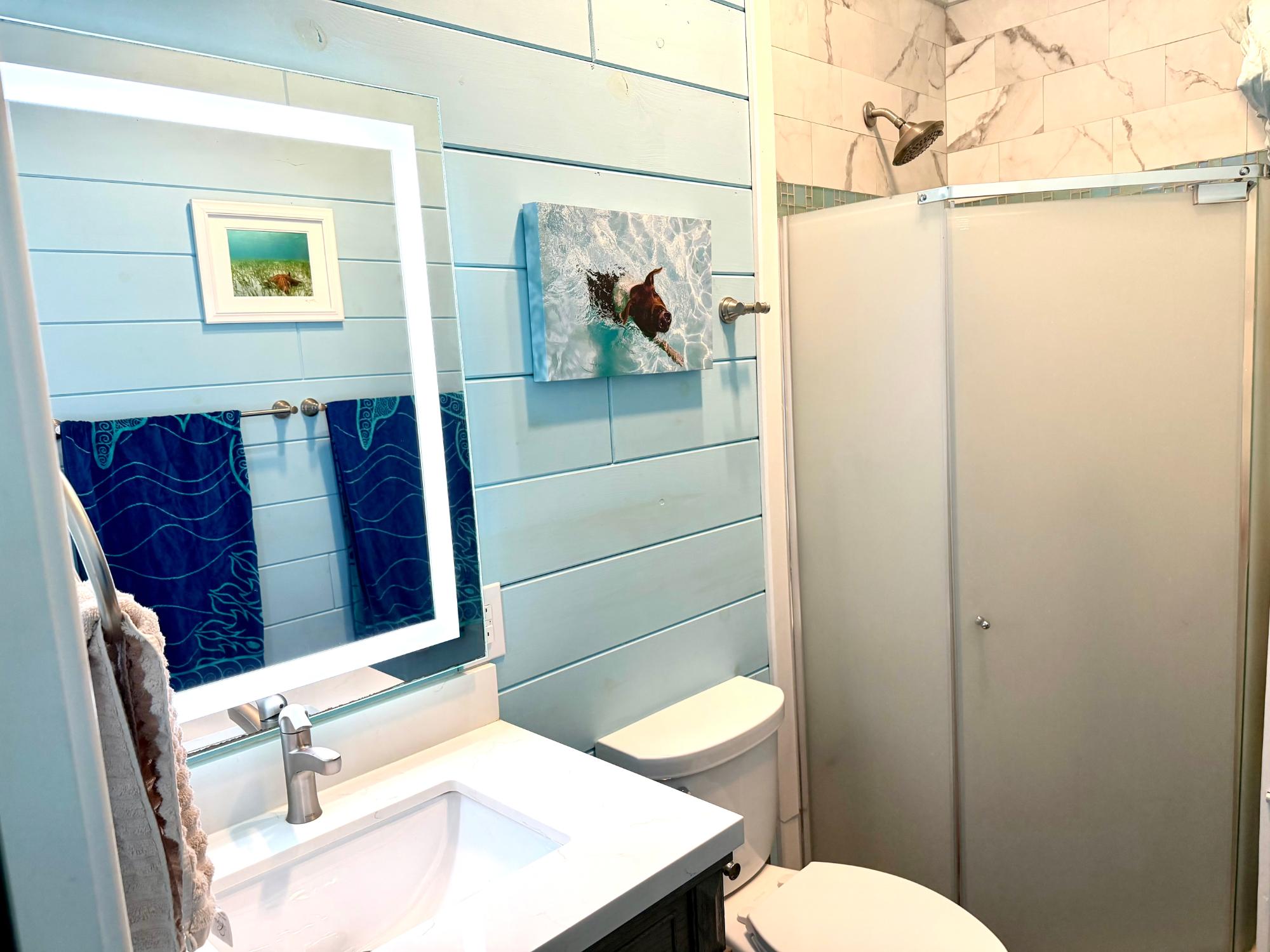 "Sea Shed" is a great starter property with immense rental opportunity. Comprising of two separated living spaces, the upstairs has one bedroom and two full bathrooms which on its perch overlooks the stunning views of Fisher's Bay. The first level offers an additional living space with one bedroom and one bathroom. Both levels providing the opportunity of both long term and or short term rentals. There is spacious air conditioned garage that can be turned into a third living space to maximize your rental income and or personal use. The attractions of Guana Cay is just short cart ride away and or walking distance. Atlantic Beach access is also just 3 minutes away. The property is equipped with an automatic 50 KW generator that ensures full enjoyment at all times.
