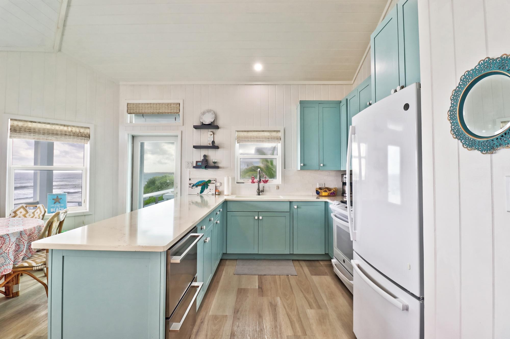 BEACH HOUSE WITH DOCK SLIP. Enjoy spectacular, head-on Atlantic Ocean views from this 3-bedroom, 4-bath pod-style beach cottage in the exclusive Dorros Cove Community on the southern shore of Elbow Cay, Abaco, Bahamas. Perfectly positioned on 109 feet of elevated oceanfront with direct beach access, the property also includes a private boat slip at the Dorros Cove Dock. All interiors have undergone a full renovation by Susan Thompson of Greenleaf Designs. The main pod offers a functional galley kitchen, round-table dining, cozy living area, two guest bedrooms, and two baths, all with a chic island vibe! A separate 576-sq-ft primary suite is connected by covered breezeways and an expansive patio with swimming pool. . It is a retreat of its own with cozy lounge, kitchenette, and laundry room. The ground level (506 sf) provides a two-golf-cart garage, additional laundry, bathroom, and ample storage. Additional features include a backup generator and beach steps. Walking distance to Tahiti Beach and a 15-minute golf-cart ride to historic Hope Town.
