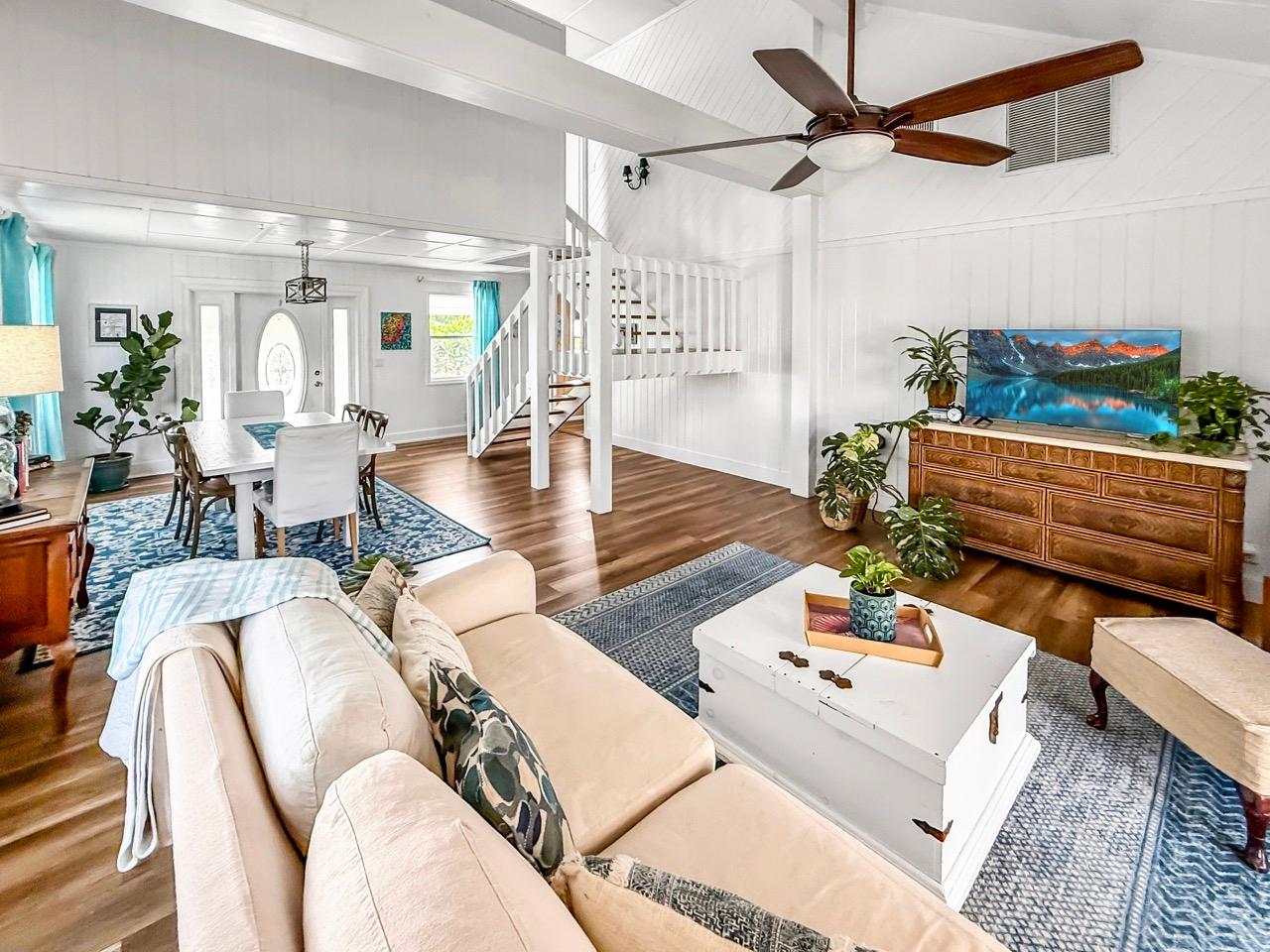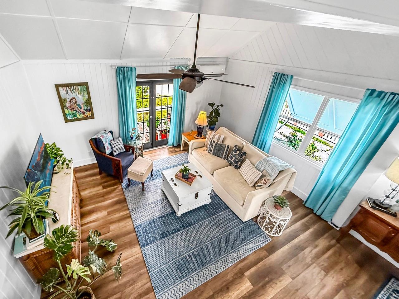 "Shooting Star" is located on Tony's Rd in the central part of the Man O War Settlement. This 2,373 sq. ft. very well maintained and updated, spacious, fully air conditioned home was built by the best of the local craftsmen. It has 3 bedrooms each with attached bathrooms, a very functional & fully equipped kitchen, store room /laundry room and an expansive floor to high ceiling living area with attached dining area. On three sides of the main floor are both covered and open porches where outdoor living at its finest can be enjoyed. Connected to fast fibre internet cable, with back up generators of 14Kw and 30Kw and 17,500 gallons of cistern water lifestyle support is assured. In less than a 3 minute walk one can be on one of the best of our beautiful ocean beaches, and going in the opposite direction you will only be minutes further away from the island grocery, hardware store, marina, boat yards, boat rental companies and the very famous MOW "Sail Shop". On island Government supported services include both a primary school and a new clinic which will soon have resident nurse.