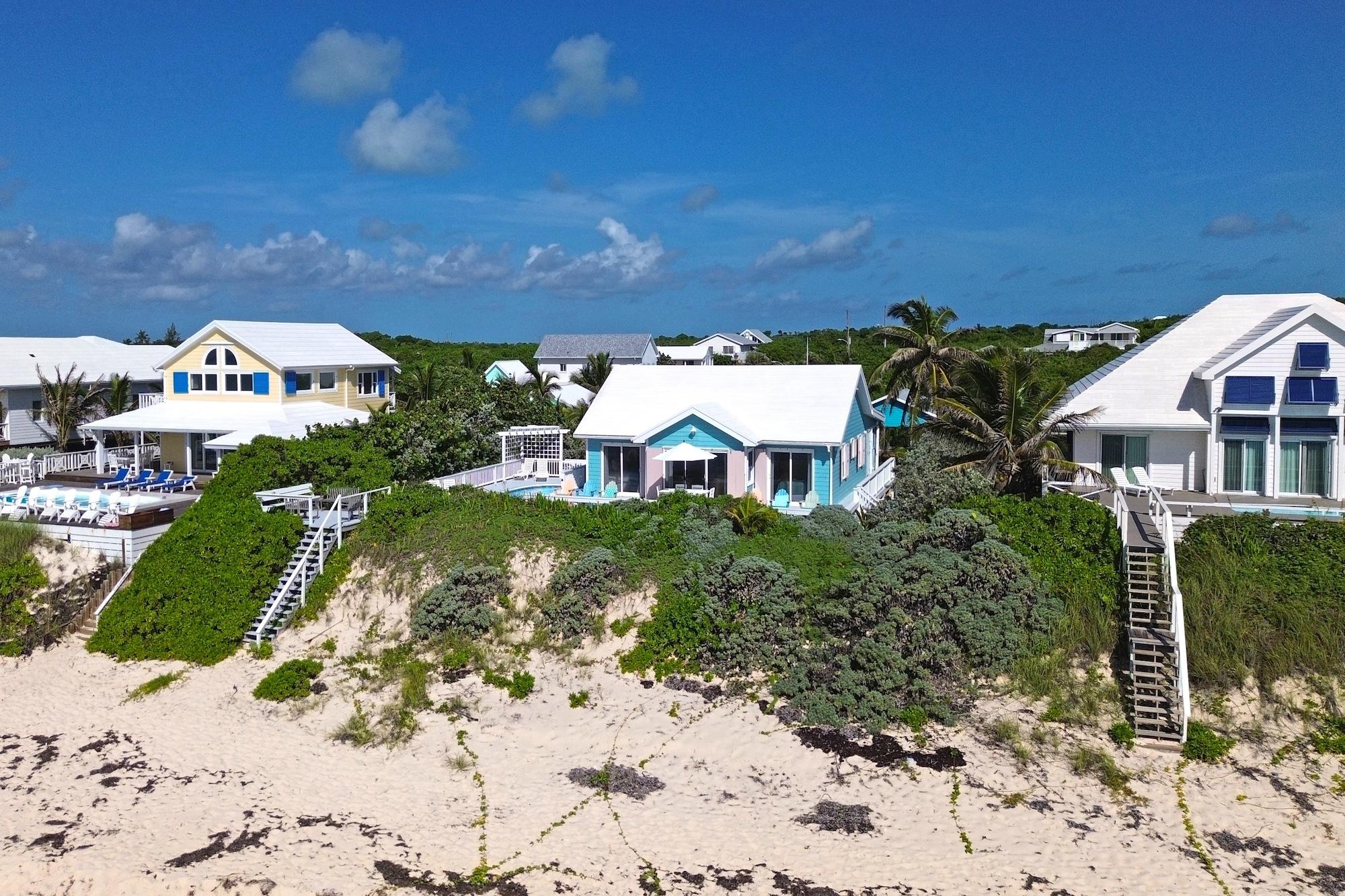 South Beach a captivating 4-bedroom, 2.5-bath Bahamian retreat. This open-concept home sits on over 80 feet of pristine beach frontage and offers unparalleled views of the Atlantic Ocean. As you enter South Beach, you'll be welcomed by a well-equipped kitchen with a breakfast bar, seamlessly flowing into the main living space. The master bedroom, featuring a king-sized bed and an ensuite bath, offers sliding glass doors allowing you to wake up to the sound of the waves and breathtaking ocean views. The second bedroom provides a comfortable queen bed, while the third bedroom is equipped with twin beds, perfect for guests. These bedrooms share a well-appointed bathroom. A fourth bedroom with a half bath and an outdoor shower offers a true island experience. The spacious decks and private pool provide ample room to relax, enjoy afternoon cocktails, and immerse yourself in the beachfront atmosphere. Located directly on the beach South Beach is not only a dream home but also a fantastic investment opportunity in the Bahamas.