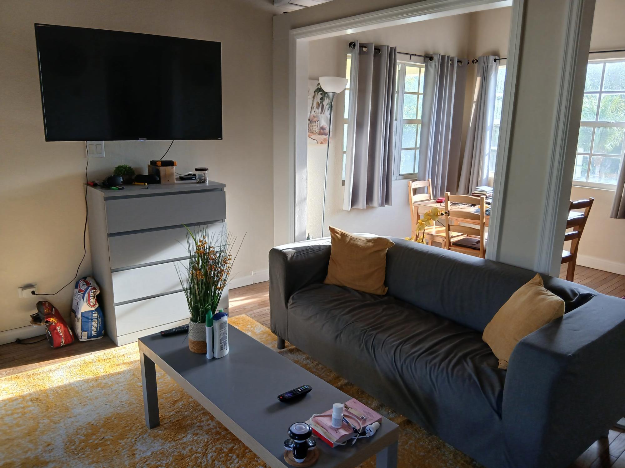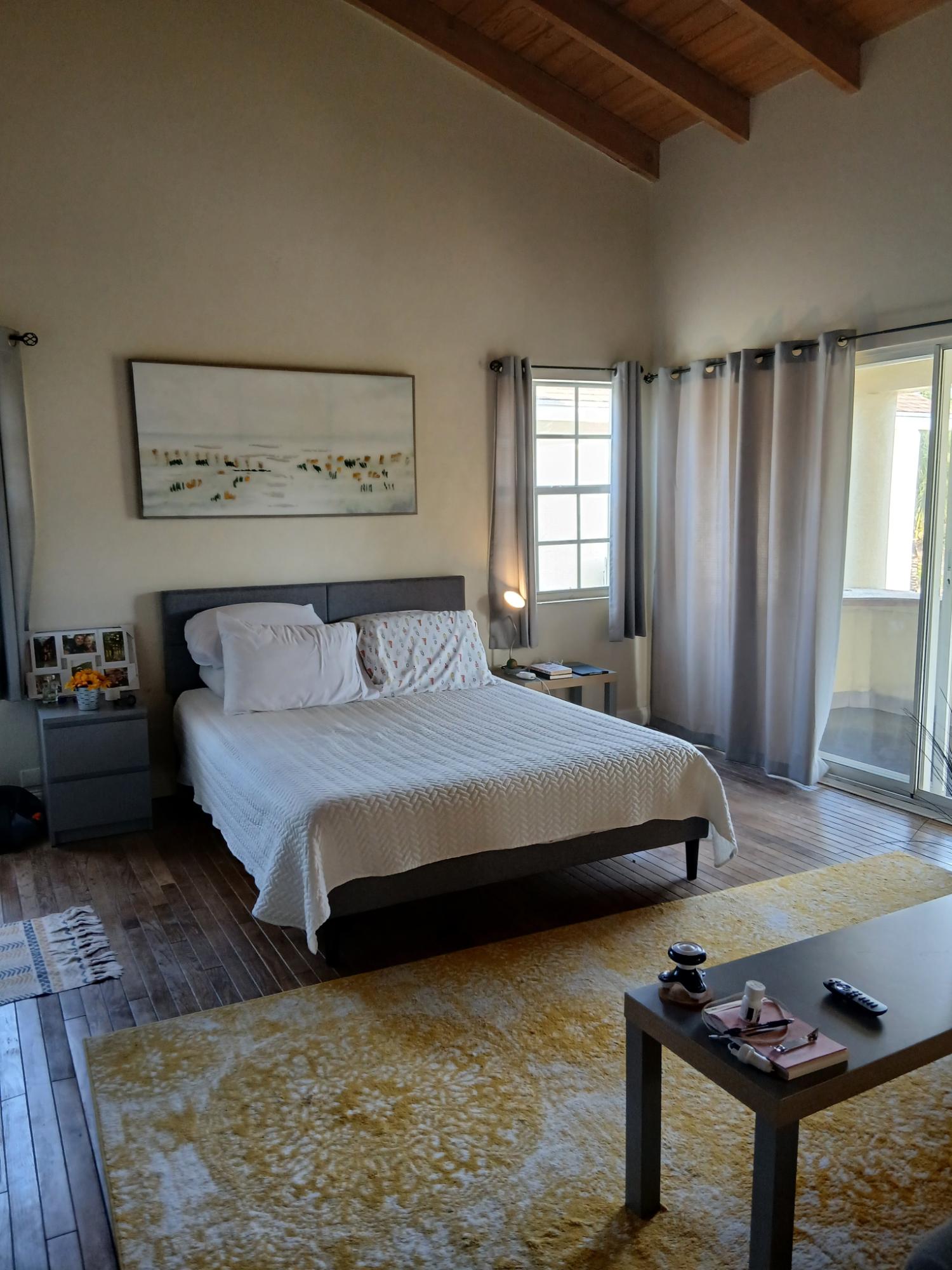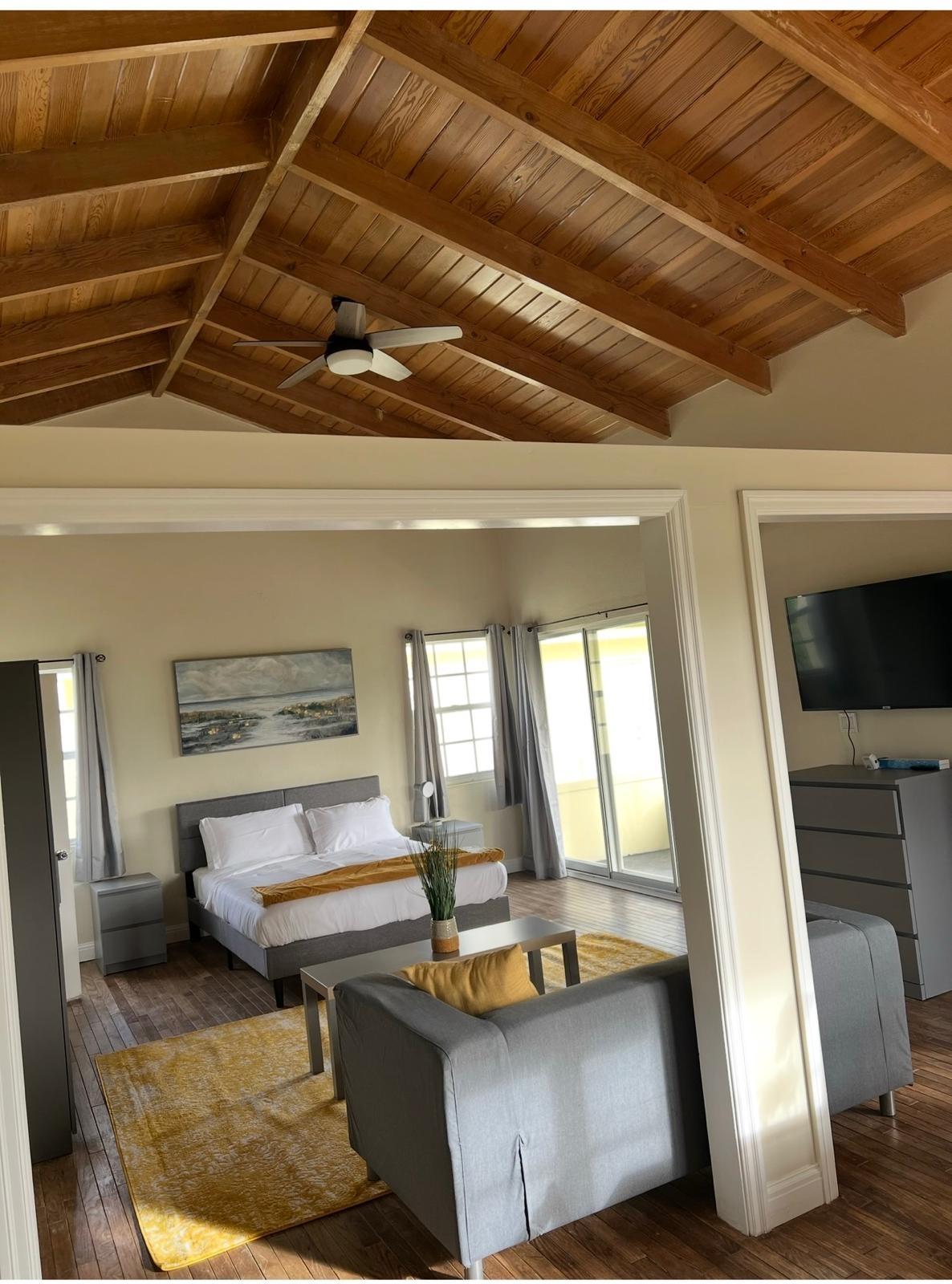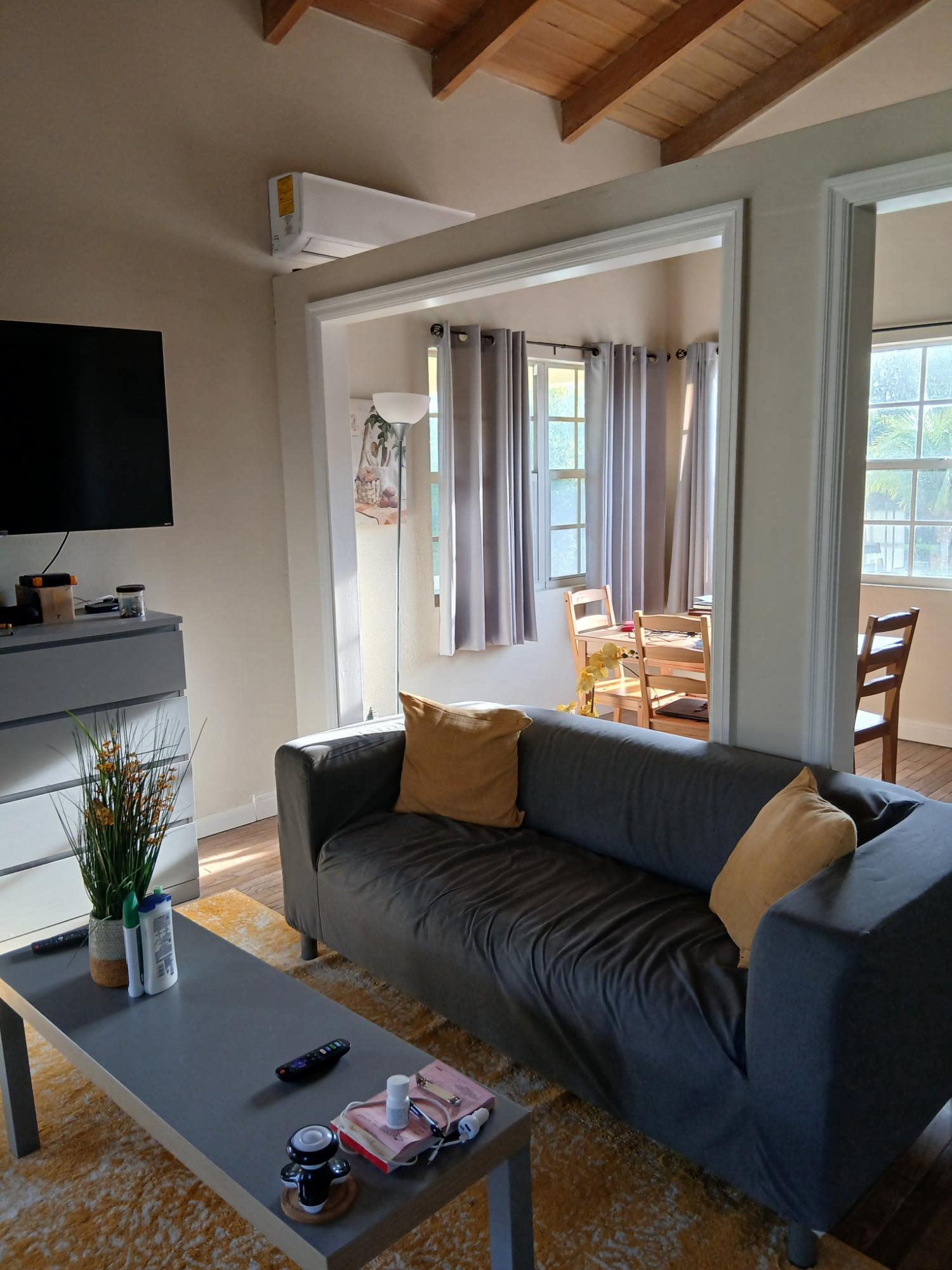 This 1 bed 1 bath apt has an ensuite bath and open plan living and dinning room.It also has a covered patio for recreational purposes.There is also a shared pool in the gardenIt has modern deckr and colours