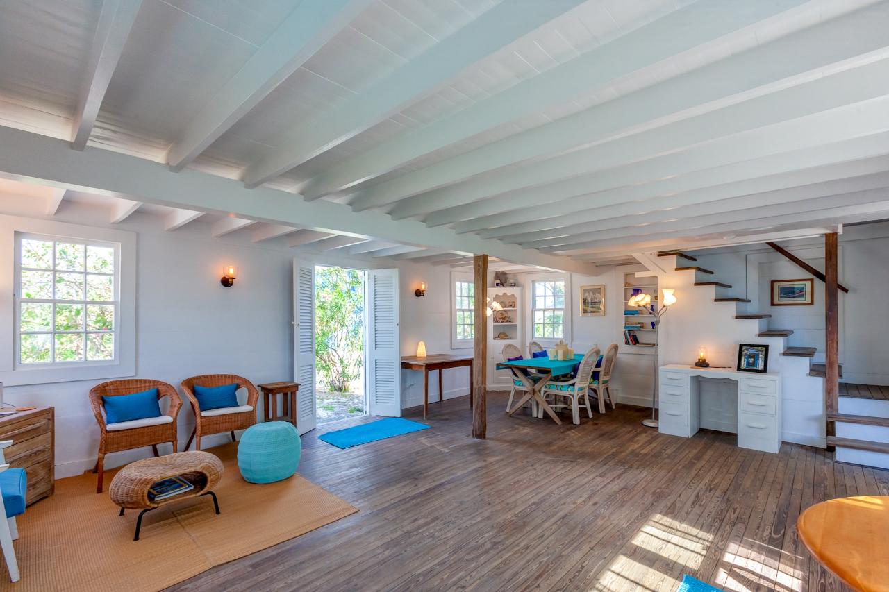 Southern Fancy is an enchanting historic island cottage nestled in the heart of the picturesque Hope Town Settlement on Elbow Cay, Abaco, The Bahamas. This timeless residence, originally constructed circa 1865, boasts a rich heritage spanning 158 years, a testament to its enduring charm and classic appeal. Restored and renovated in 1953, 1991, and most recently in 2021, Southern Fancy blends the character of its past with the conveniences of modern living, all set against the breathtaking backdrop of oceanfront splendour. The cottage is two-levels, totaling 1,182 square feet, and comprised of wood frame construction, wood siding, a solid concrete foundation, and three cisterns that can hold up to 17,000 gallons of water. The main floor of this island gem features a detached guest suite, complete with one bedroom and a full bathroom.