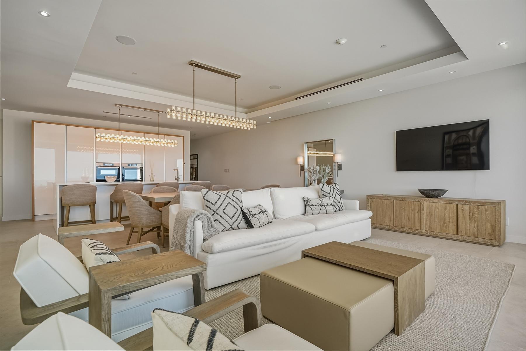 202 The Cove is a much-prized, highly sought-after ground-floor end unit, uniquely positioned with unobstructed beach and ocean views to the southeast, plus marina and resort views to the southwest. A full wall of sliding glass doors connects the spacious, open-plan kitchen, living, and dining areas to your own private patio overlooking the pool, beach, and the sparkling ocean beyond. The luxury custom kitchen features upgrades such as double wine coolers, an under-sink RO system, and a pop-up charger, with amazing ocean views that make cooking a pleasure. From the primary suite, the click of a button opens automatic blinds to reveal stunning views on two sides. A walk-in closet leads to the spa-like bathroom with double vanities, a shower, and a soaking tub. The two guest bedrooms are both en suite, providing comfort and privacy for guests. Palm Cay is a fantastic beachfront, marina-based, gated community, fully loaded with amenities, making it ideal for either full-time residence or vacation rental investors. Amenities include a restaurant, coffee shop, and tennis court.