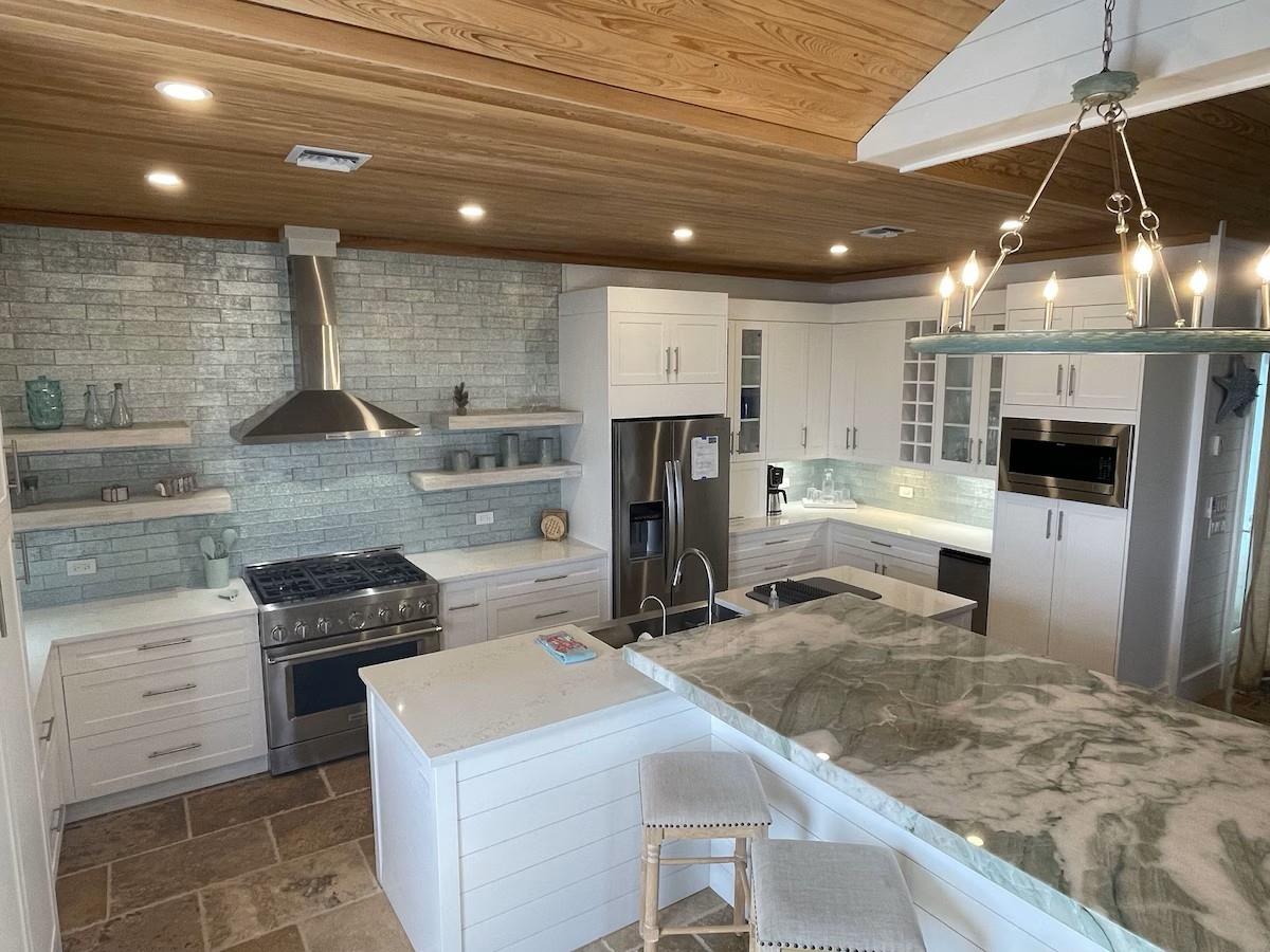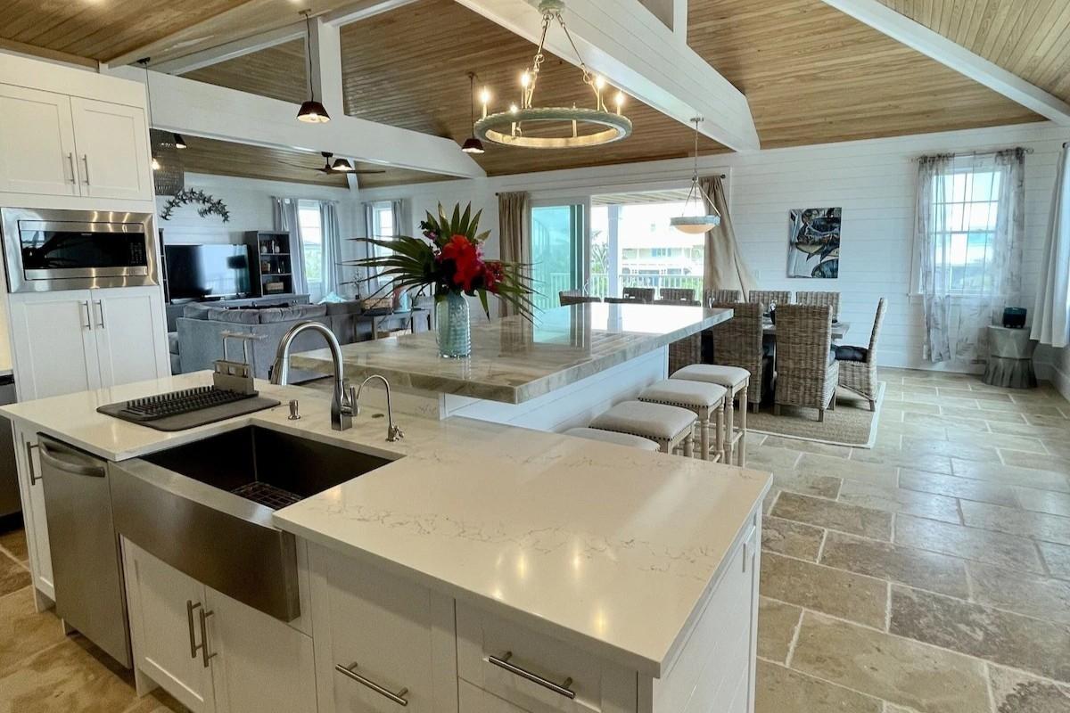 The Frigate House was built in March 2023. 3,166 sf of air-conditioned top of the line living space. Fully furnished turnkey includes all kitchen/serve ware, linens, towels. Includes gas appliances 2 clothes dryers with washers, and a pro series stove and electric appliances., bait freezer, two dishwashers, two beverage refrigerators and six televisions. All super high efficiency AC units are compatible with solar power. Concrete cistern capacity is 20,000 gallons with WIFI connected cistern monitors. Anderson CAT 5 windows and PGT Cat 5 doors. Standing seam white aluminum roof. 672 sf of air-conditioned garage space; suitable for easy conversion to living space. It also comes with a 35â boat slip in the new Marnieâs Creek Marina. In ground concrete heated saltwater pool. Space designed & prewired for a solar field. The outdoor living space is well designed for family gathers. It contains a full kitchen and bar. The indoor play area includes full size pool table, darts, and other game activities. It has a bathroom with outdoor shower connected to an extra bedroom space for the kids.
