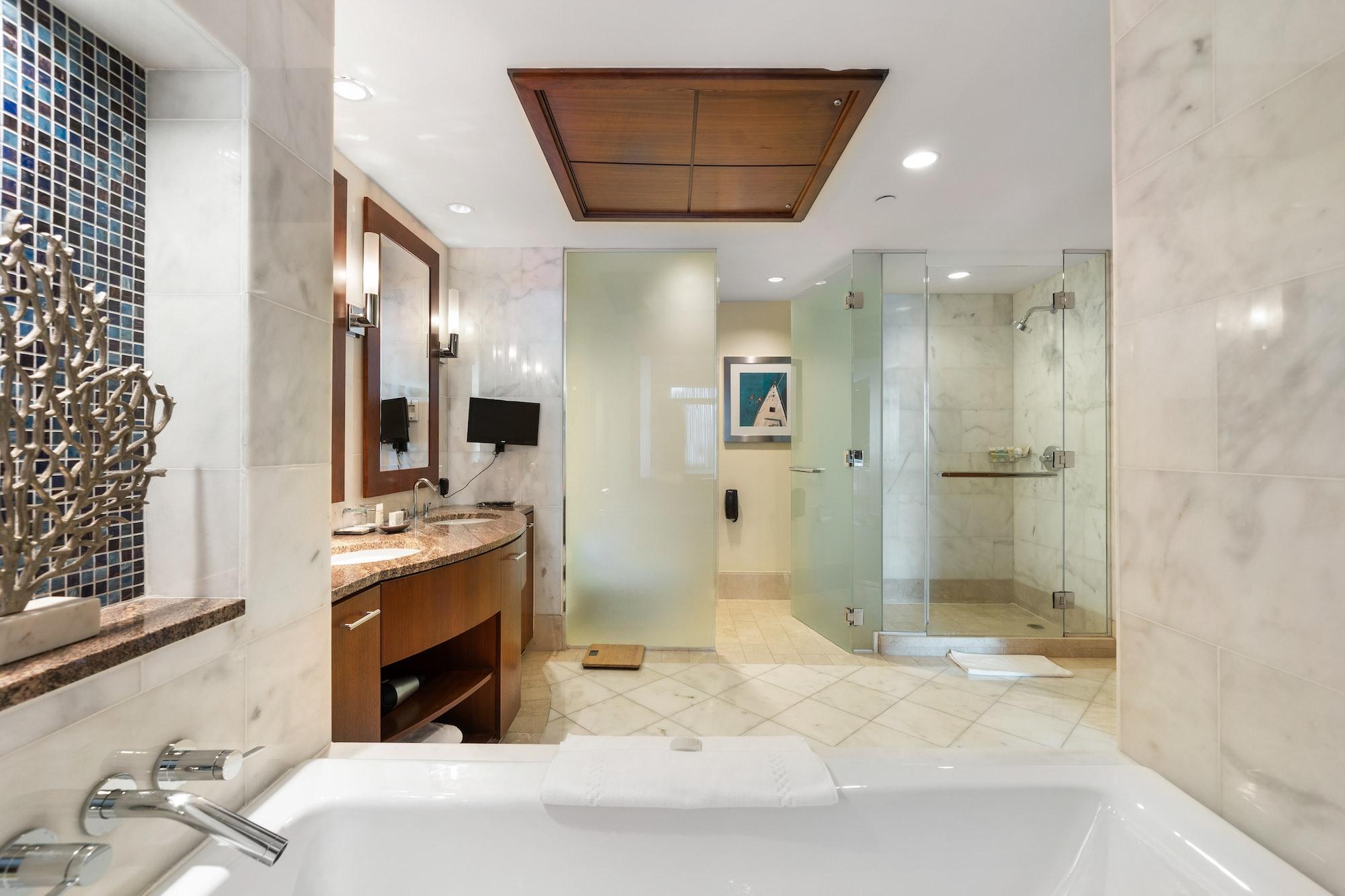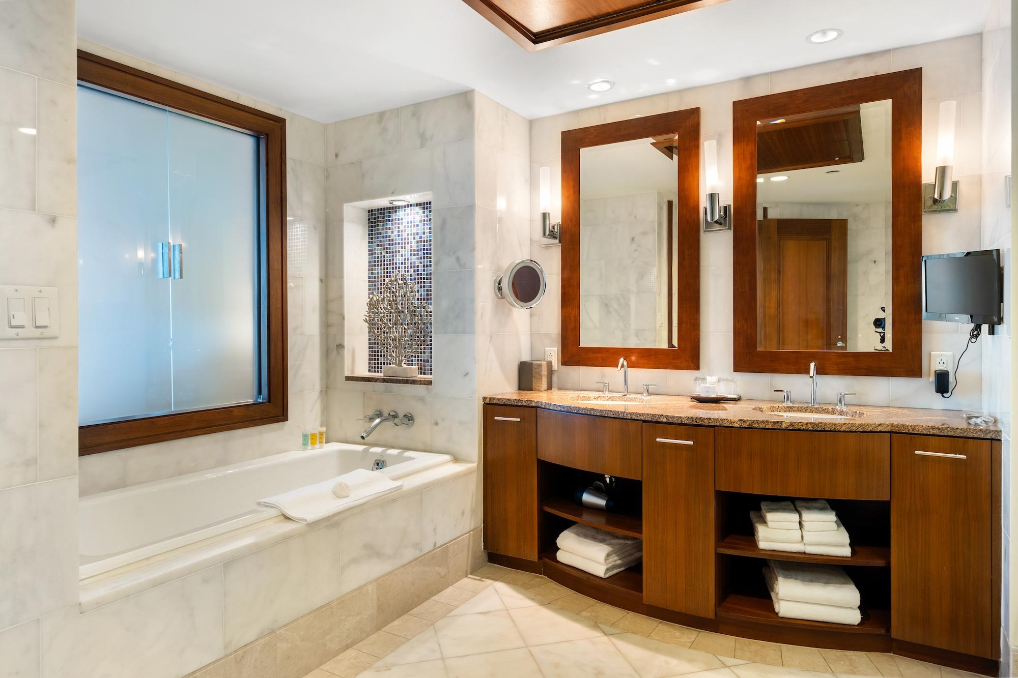 This is an 18th floor, two bedroom with amazing views of Nassau Harbour, Harbour lighthouse, and the beach. The Reef Residences at Atlantis is the only building on the beach at Atlantis that offers full kitchens. The Reef now brags of its newly remodel elegant suites, fully furnished, from linens to tableware, and features a wide array of custom interior amenities such as crown molding, granite counter-tops, and fine European kitchen cabinetry. Owners of The Residence at Atlantis (The Reef) have exclusive access to their own private gym, a Starbucks Cafe conveniently located in the lobby, and an owner's concierge team is available to assist with everything from dinner reservations to in-house massages and cocktail parties. Other amenities include access to the adult pool at the Cove and Aqua venture at Atlantis.