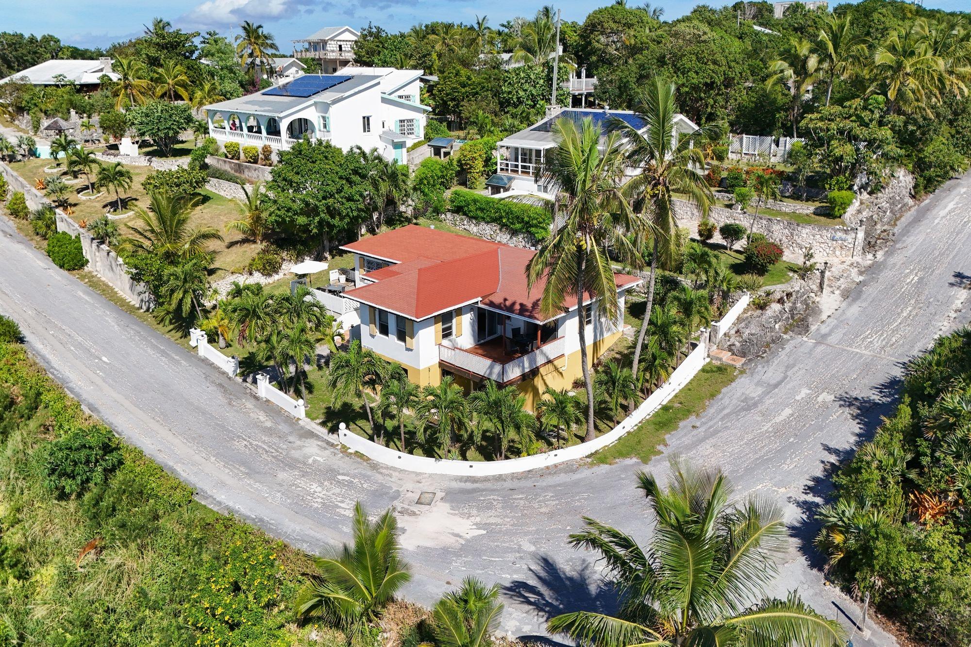 The Seaside is a well-maintained concrete home in the desirable waterfront community of Ocean View Heights, just outside Governorâs Harbour. Overlooking the calm waters of Eleutheraâs west coast, this two-bedroom, two-bath residence offers beautiful sea views and stunning sunsets in a peaceful coastal setting. The home features ceramic tile flooring throughout, air-conditioned bedrooms, ceiling fans, and a mix of wooden and aluminum shutters. Solid construction provides a strong sense of comfort and durability. Set on a protected corner lot and positioned slightly lower than neighboring homes, the property enjoys cooling sea breezes, excellent water views, and added storm protection. Palm trees and tropical landscaping surround a low-maintenance yard, along with a single-car garage and a rainwater collection system supported by two cisterns of approximately 9,000 and 7,000 liters. Move-in ready and ideally located near the sea and minutes from Governorâs Harbour, amenities, and the airport, Seaside is ideal as a home, retreat, or investment.