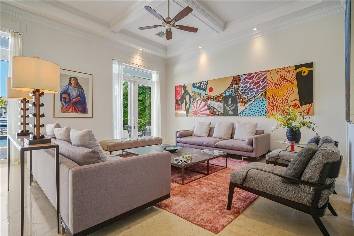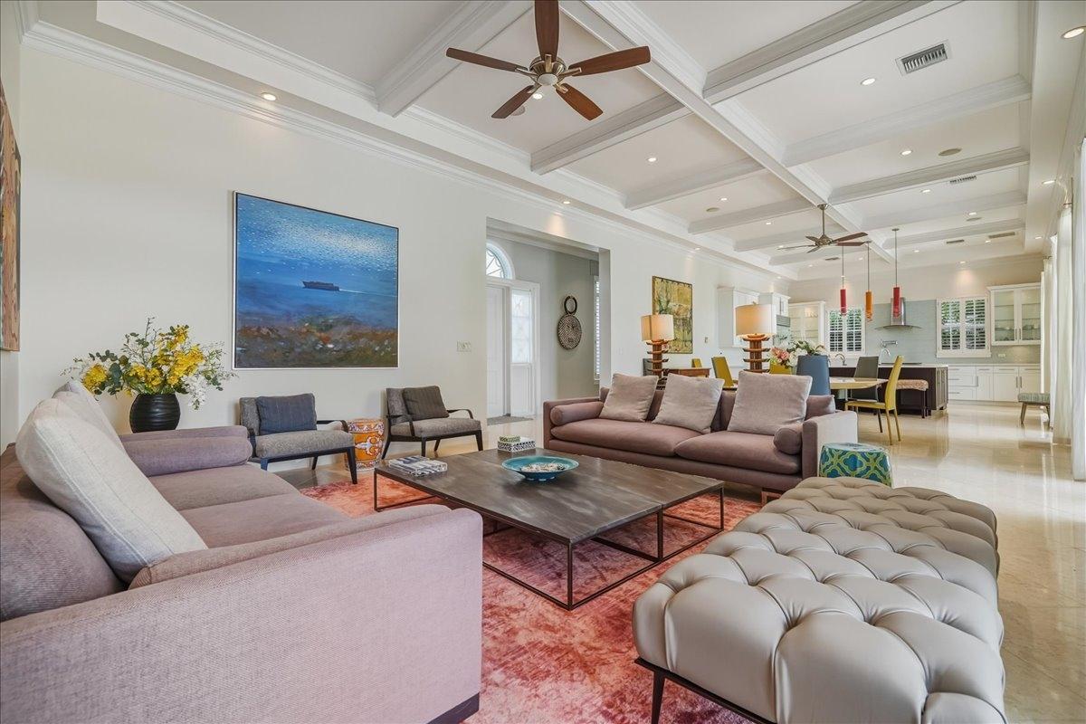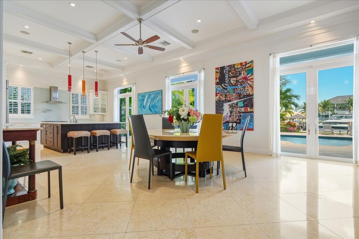 Nestled in Old Fort Bay, Two Palms is a canal-front home with 5 bedrooms 5 bathrooms, 4,052 sq. ft. of interior space, 450 sq. ft. guest cottage & double car garage. The bright & airy ground floor features a living & dining area & a custom chefâs kitchen, opening to a spacious covered patio, ideal for entertaining! The kitchen boasts premium appliances (Wolf, Bosch, Subzero), quartz countertops & spacious pantry. Luxurious finishes include coffered 12' ceilings, marble, travertine & hardwood flooring. Two Palms offers a luxurious principal suite, 4 additional bedrooms, and spa-style bathrooms. Boasting tropical charm, Two Palms offers 2,050 sq. ft. of covered patios, gazebo, pool & gorgeous garden with mature landscaping. Two Palms is a boaters paradise offering 90ft. of canal frontage with an 80ft dock. Additional amenities include electric hurricane shutters, 42KW generator & 25,000-gallon rainwater tank. Residents enjoy tennis & padel courts & a playground.