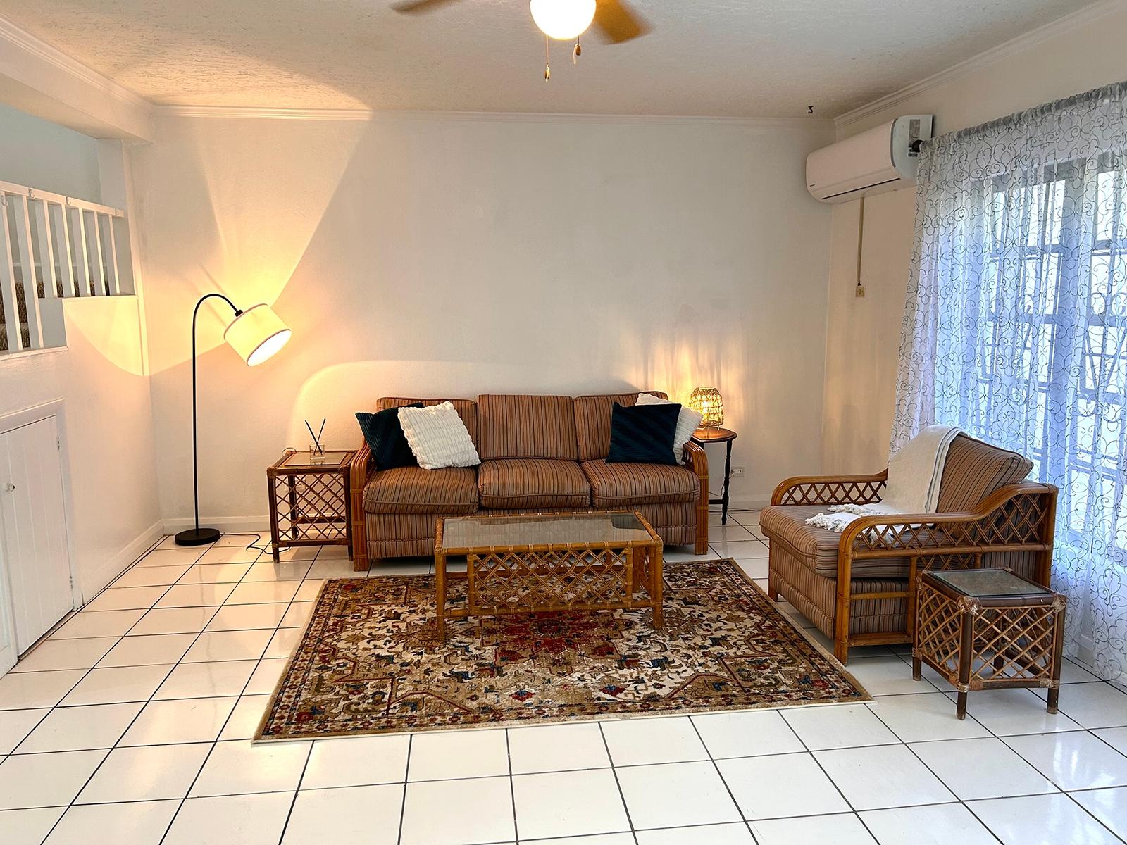 Located within a quiet, gated community in Eastern New Providence, this updated 3-bedroom, 2.5-bath townhome offers both comfort and convenience. Recently painted throughout, the residence features a bright open-concept layout and a renovated compact kitchen with new countertops and a sink. This two-storey end unit enjoys added privacy along with additional yard space. The ground level welcomes you with a generously sized room ideal for a guest bedroom or home office, as well as a stylish kitchen that flows seamlessly into the living and dining areas, perfect for entertaining or relaxed everyday living. Upstairs, the spacious primary suite includes an ensuite bathroom, a walk-in closet, and a private balcony, an ideal setting for morning coffee. A well-appointed secondary bedroom with its own ensuite bathroom completes the upper level. Additional features include new tiles on the porch and balcony, an in-unit washer, ample parking, and a prime location just a five-minute drive from Yamacraw Beach. Conveniently situated near schools, shopping, dining, and a nearby children's park.