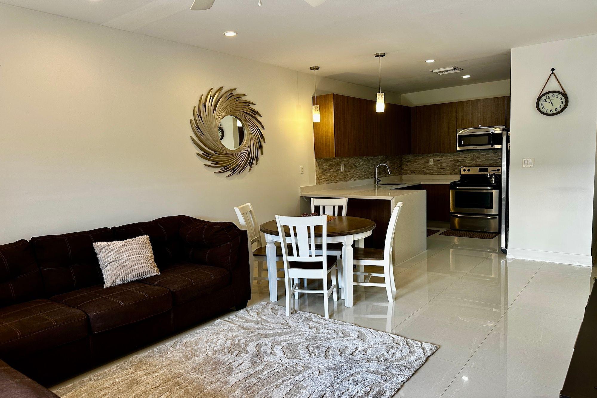 Perfectly appointed two bedroom, two bathroom upstairs corner unit located in the gated community of Venetian West. Offered fully furnished, this well maintained residence features an open concept living and dining area, tile flooring throughout, and a modern kitchen with stainless steel appliances and a natural stone backsplash. The spacious primary suite includes a walk in closet, while the second bedroom offers generous storage. Additional upgrades include a brand new A/C unit, heater, dishwasher, washer, and dryer, along with two side by side parking spaces. Residents enjoy 24 hour security, a swimming pool, fitness centre, tennis court, and landscaped grounds, all just minutes from Old Fort Bay Shopping Plaza, dining, shopping, and schools.