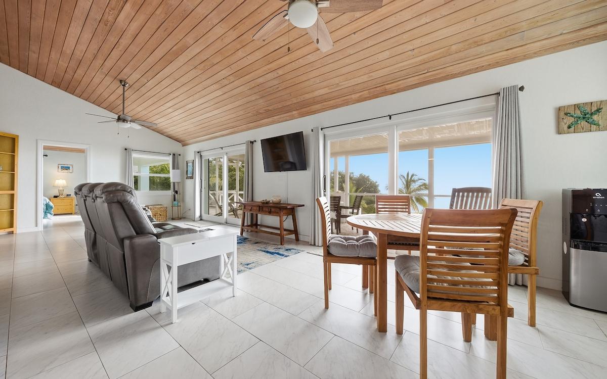 Completely renovated in 2022, Ware A Dise is a beautifully reimagined coastal residence nestled among lush tropical gardens in the heart of Palmetto Point. Originally built with enduring craftsmanship, the home now blends timeless island character with modern performance and storm-resilient upgrades. Water views and cooling sea breezes are enjoyed from nearly every room, while an open-concept great room flows seamlessly to an aluminum-framed screened veranda â perfect for relaxed indoor-outdoor living. The state-of-the-art kitchen anchors the main level, complemented by three spacious bedrooms, including two en-suite retreats with private outdoor access. An expansive entry deck and multi-level Trex sun decks create ideal spaces for entertaining and sunset gatherings. Below, a generous garage provides ample storage for vehicles and watercraft. Along the shoreline, a naturally protected swimming cove offers calm access for paddleboarding, kayaking, and launching small watercraft â a rare and highly desirable feature. Upgrades include impact-rated windows and doors, storm shutters